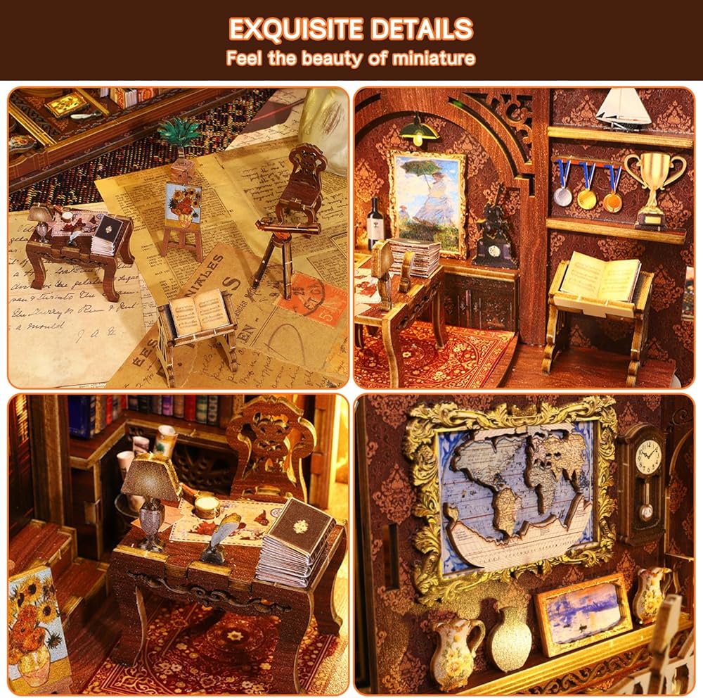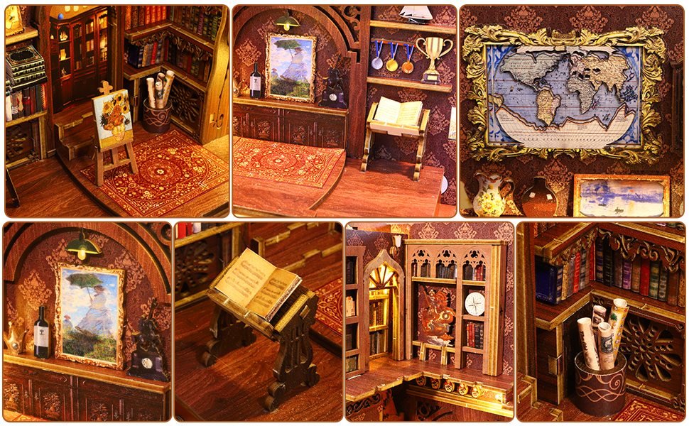 [حرفية رائعة] - مجموعة الكتب المصغرة مصنوعة من خشب عالي الجودة، قوي، متين، وسهل الإزالة. من خلال قطع رقائق الخشب بدقة إلى أشكال صغيرة ومطابقتها بدقة لتشكيل زاوية كتاب رائعة. يستعيد الإعداد الواقعي للمشهد العالم المصغر بشكل مثالي في زاوية الكتاب، مما يسمح لك بالشعور بسحر وعجائب العالم الصغير!