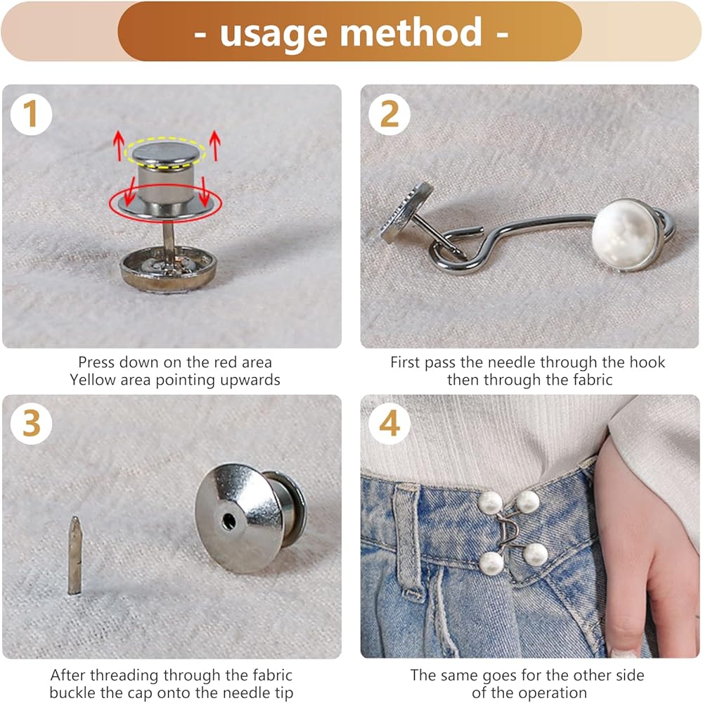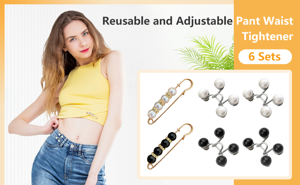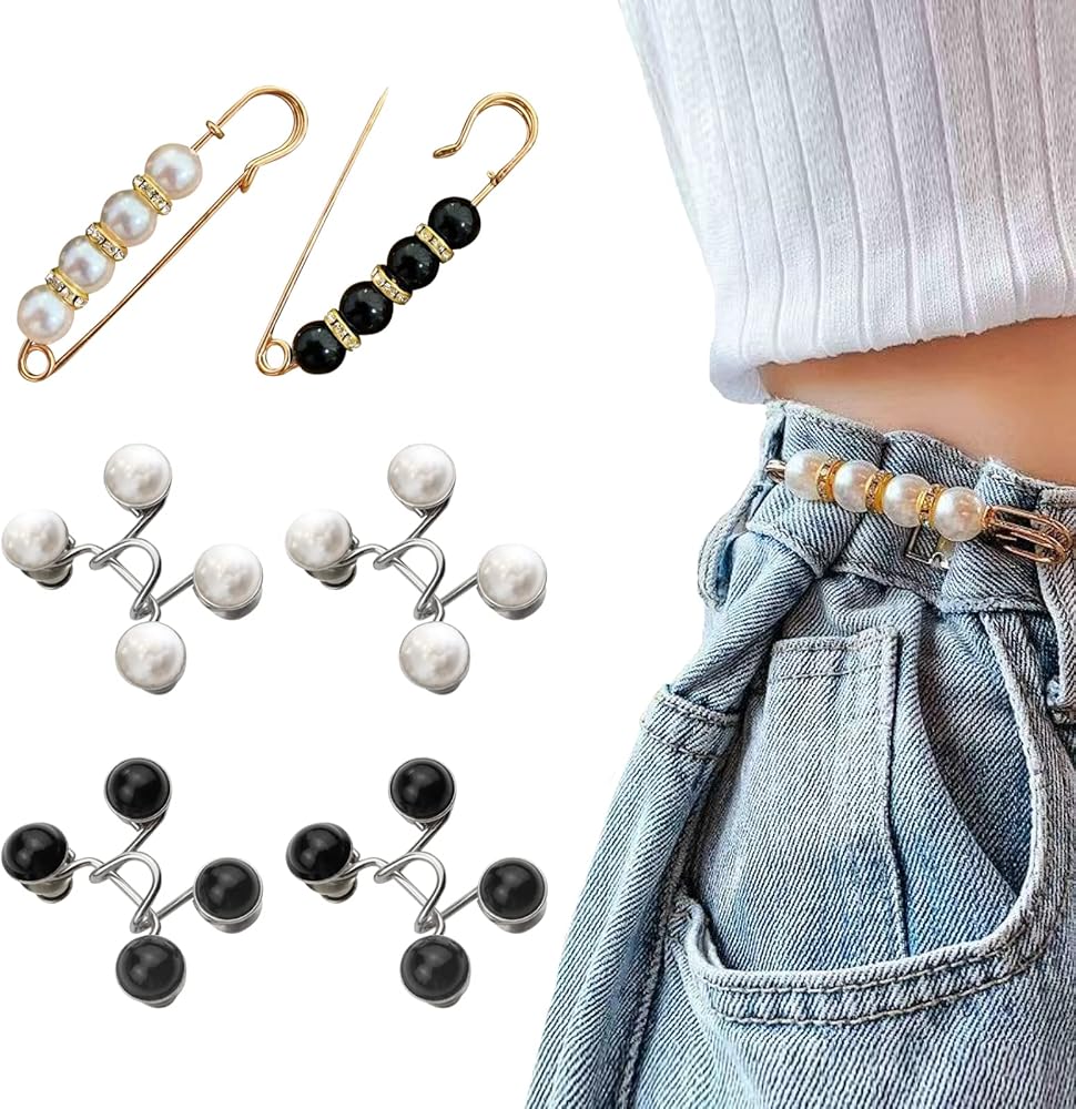 Sufficient Quantity:You will receive 4 set of detachable pant waist tightener and 2PCS pearl waist brooch,meet your usage needs
