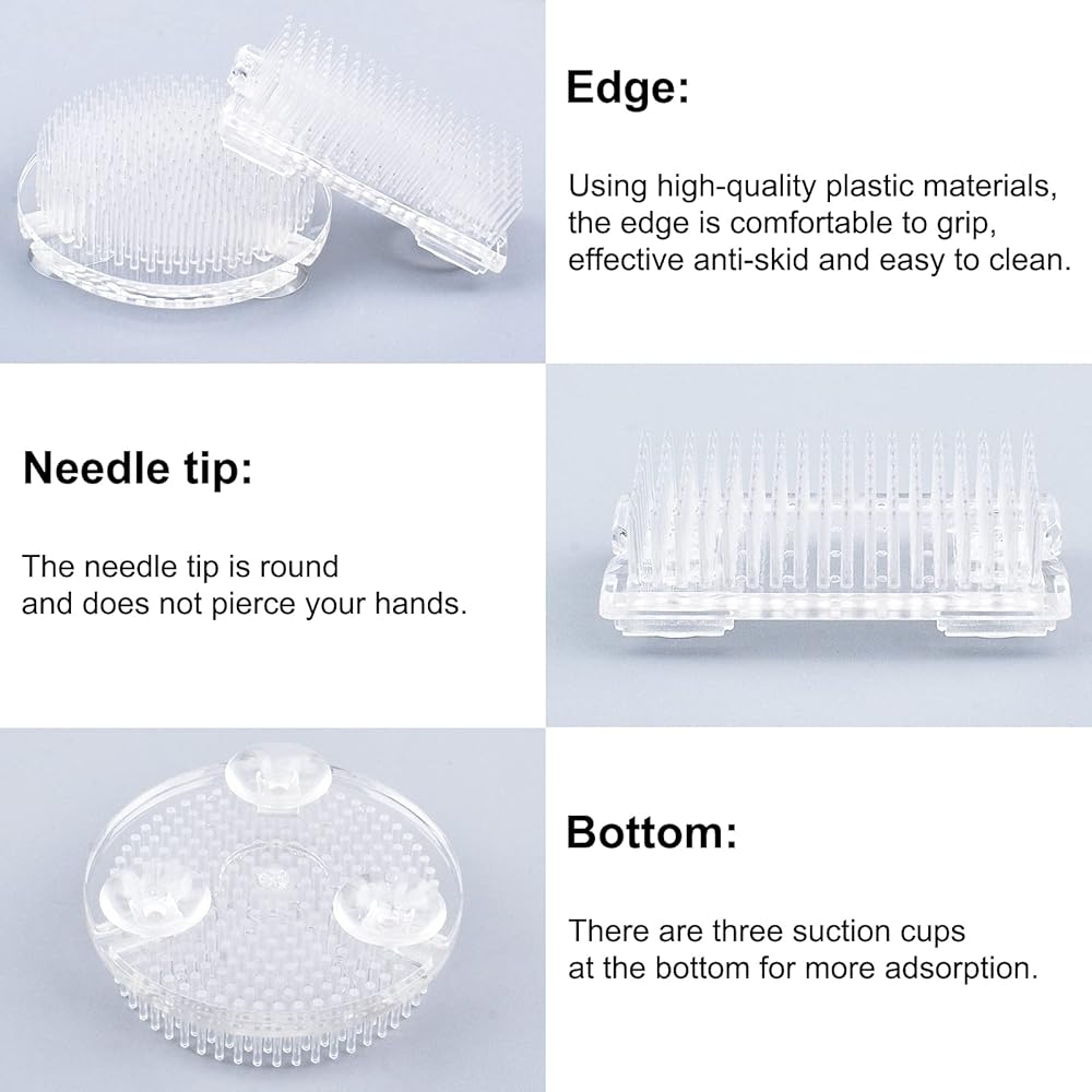 WANDIC 2Pcs Flower Frog, Round Rectangle Clear Plastic Ikebana Kenzan Frog Japanese Flower Holder with 3 Suckers for DIY Flower Craft
