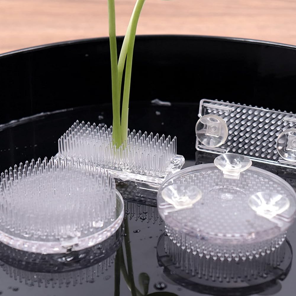 Strong adsorption : There are three small suction cups are distributed in a triangular shape, which has a stronger adsorption force and make it stronger to prevents floral frogs from tipping or sliding.