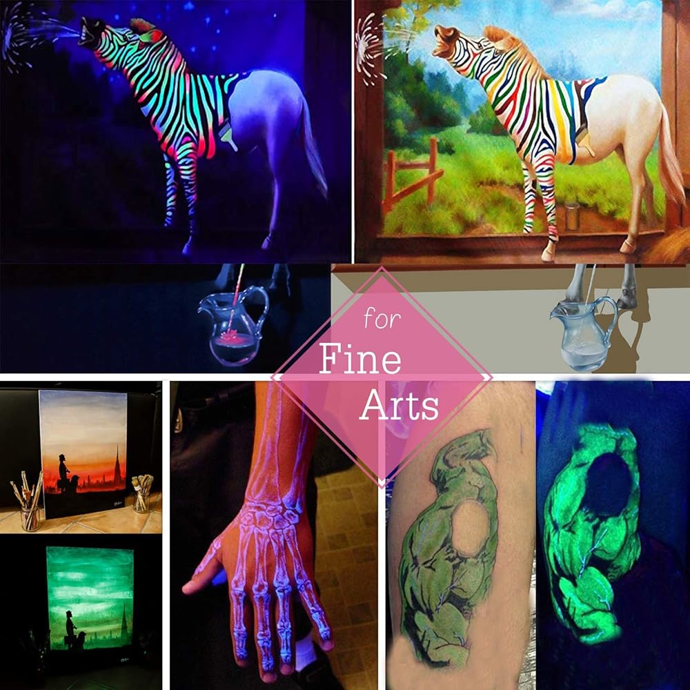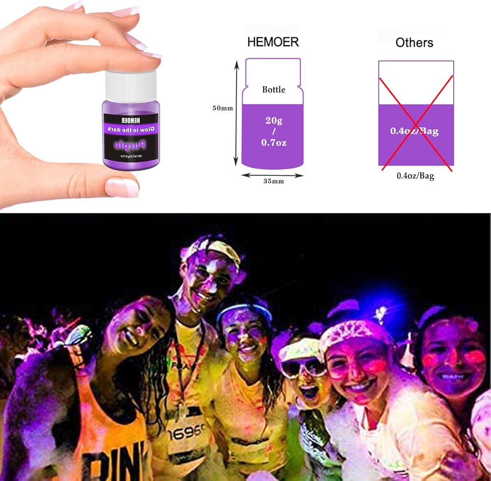 ✨ Glow Pigment for Halloween Decor -- This glow pigment is the perfect accessory for Halloween treat or trick, festivals, theme parties, color run, night-outs with friends, and much more activities in the dark or at night for face painting or body painting