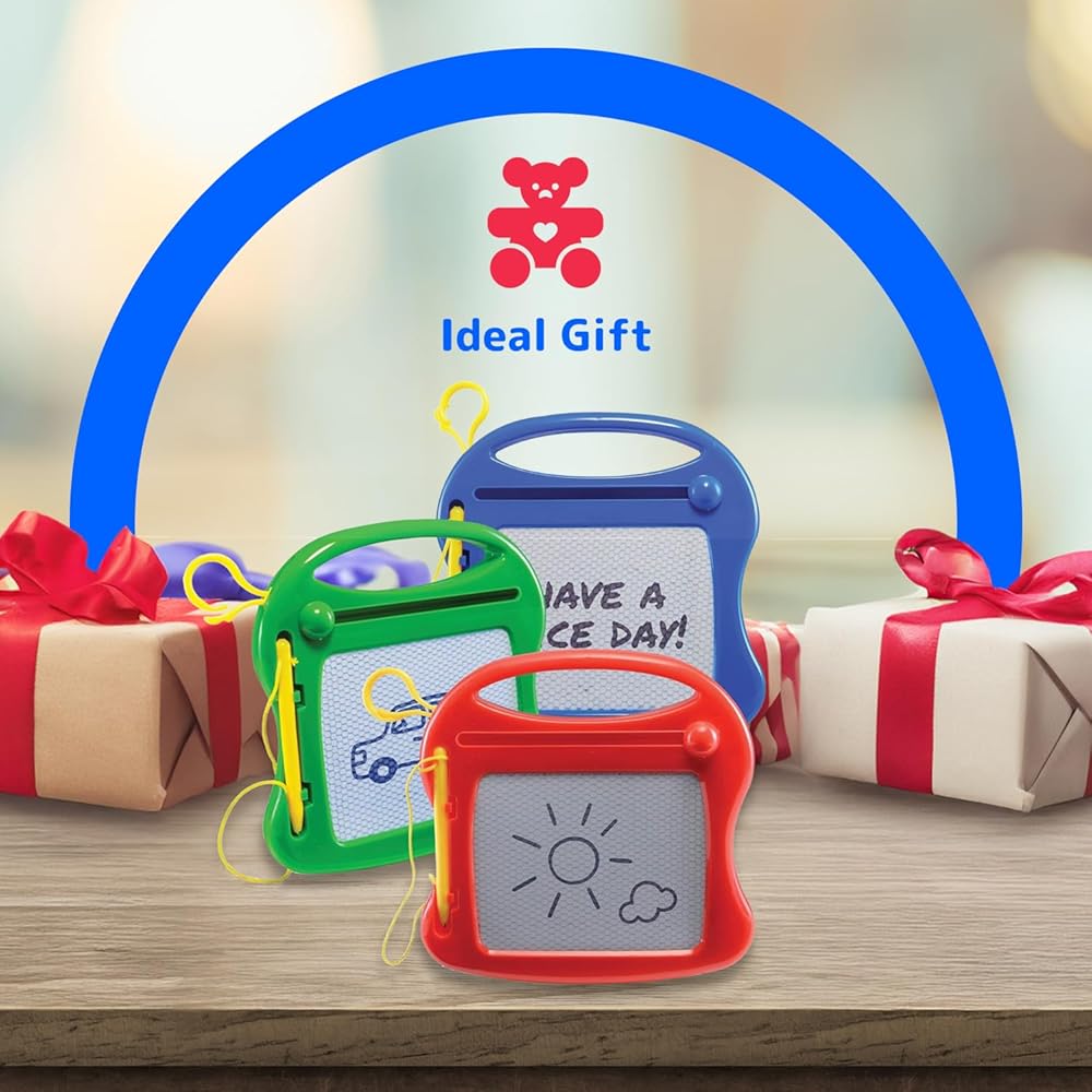 BEST MAGNETIC DRAWING BOARDS: 18-piece magnetic drawing pad set with magnetic drawing pens for fun drawing games, kid toys, and party favors. Let them scribble and erase all day long with these reusable doodle boards.