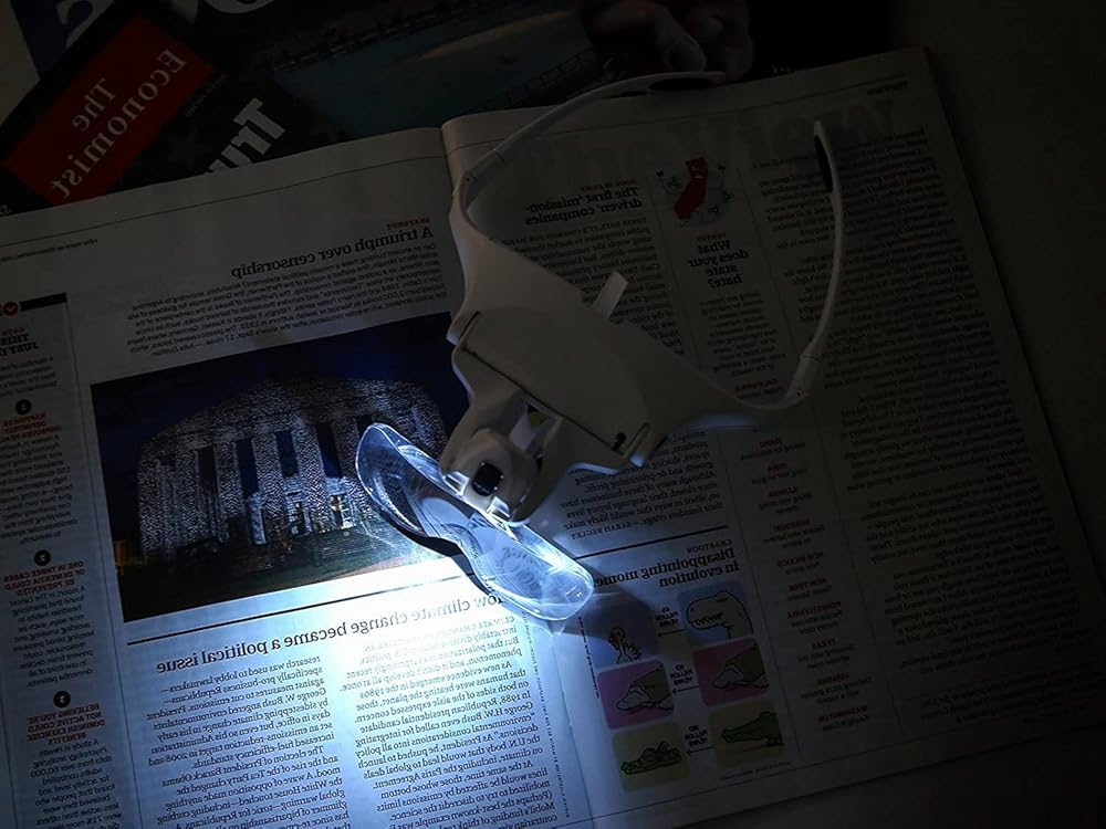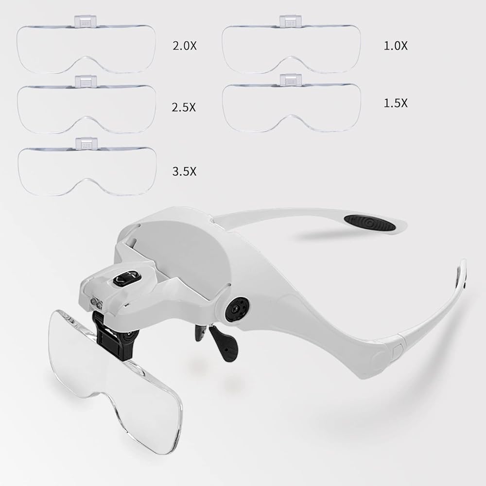 Headband Magnifier with LED Light, Head Mount Magnifier Glasses