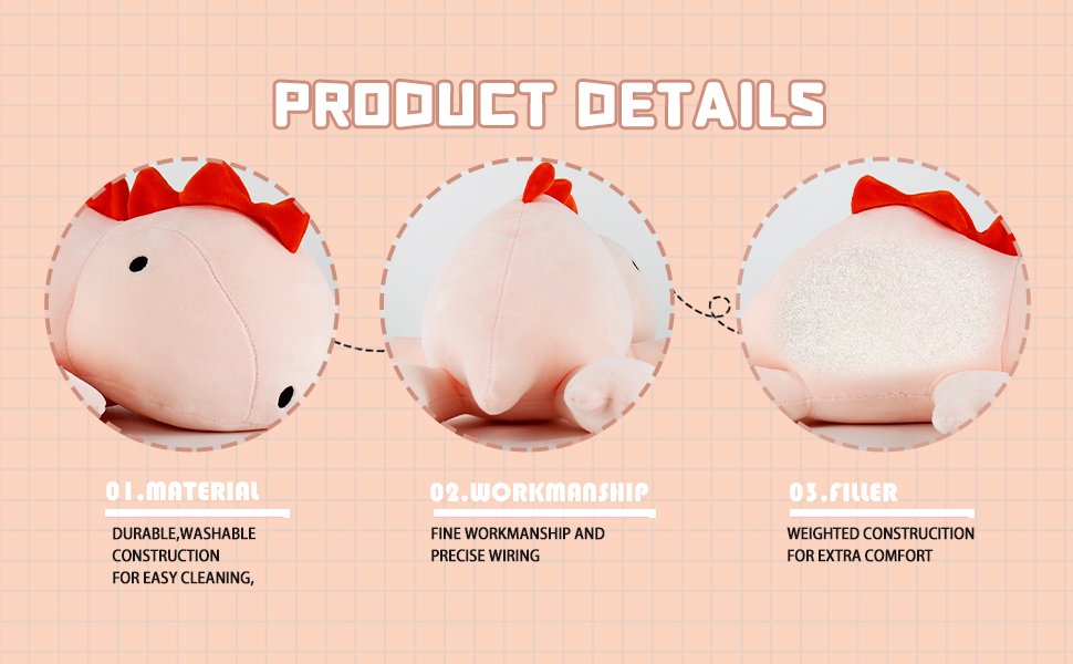 【Premium Quality & Real Weighted】: Our weighted dinosaur plush is more than just a stuffed animal. Made with soft cotton and filled with high-quality soft PP cotton and weighted beads, this real weighted dinosaur plush is durable, washable, and crafted to the highest international standards. It's designed with precision for lasting use and easy maintenance.