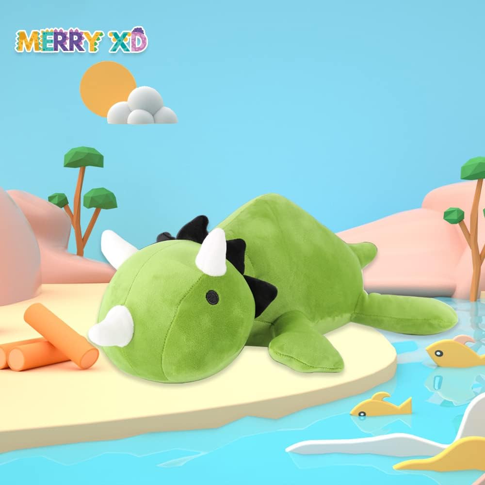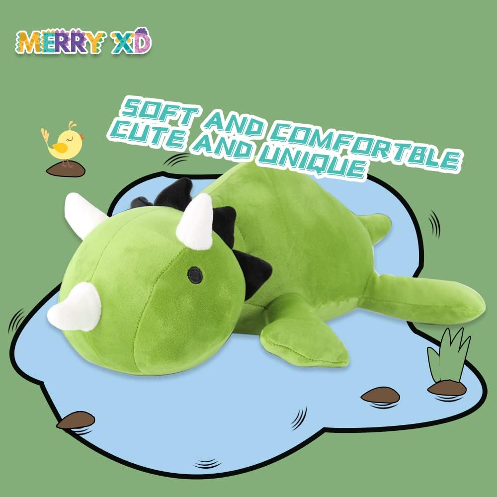 MerryXD Weighted Dinosaur Plush Pillow Stuffed Animals, Green 16 Inch Weighted Dino Plushie and Throw Pillows, Super Soft Cartoon Hugging Toy Gifts for Kids & Adults, 1.6 lbs