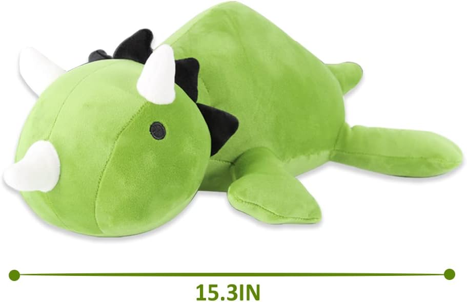 【Comfortable & Huggable】: This soft and adorable weighted dinosaur plush doubles as a cozy pillow for sleeping, reading, watching TV, studying, or napping. Its cuddly construction provides extra snuggly comfort, and making children feel secure. It's the perfect size for kids and comfortable for adults, too!