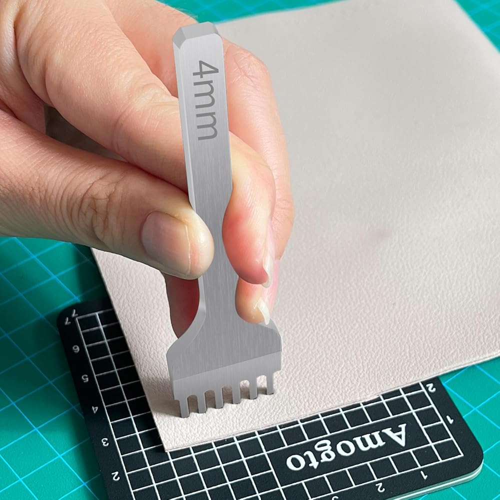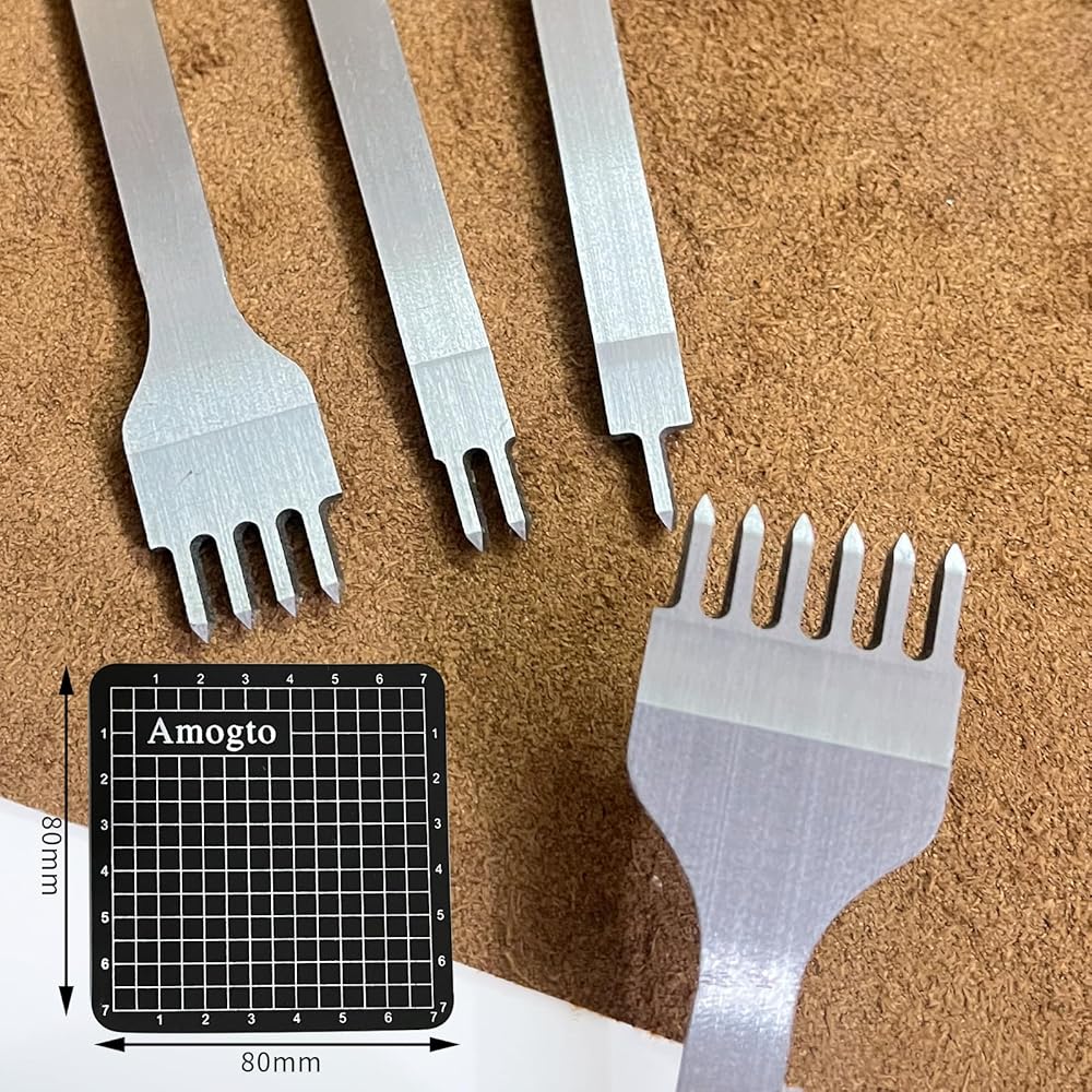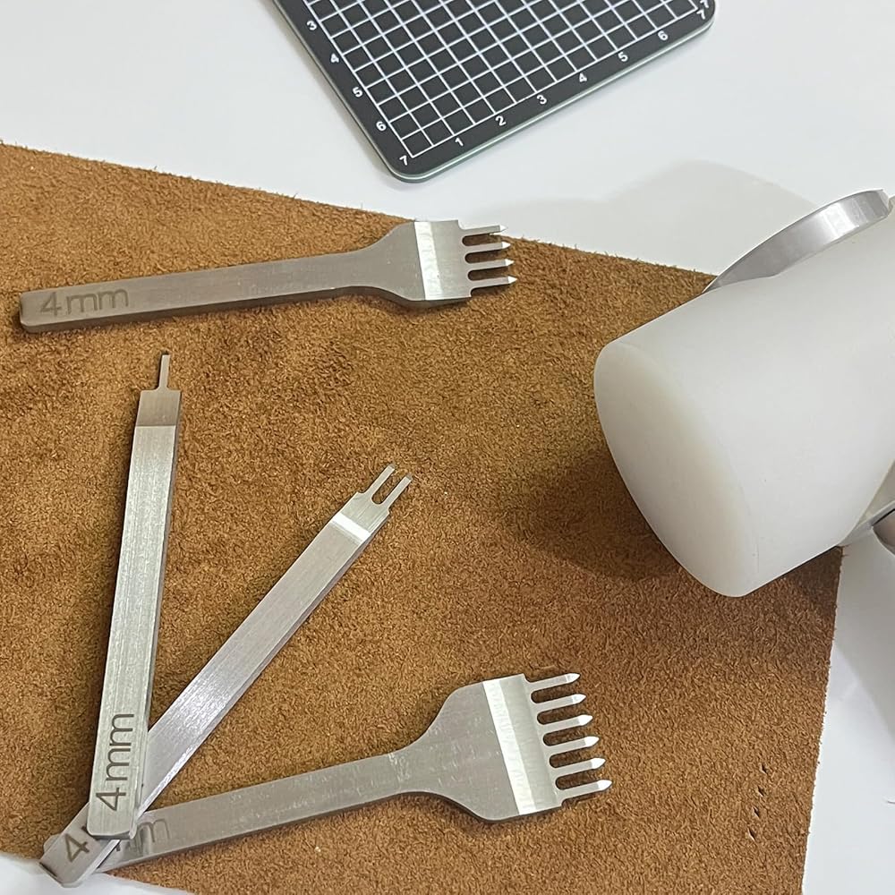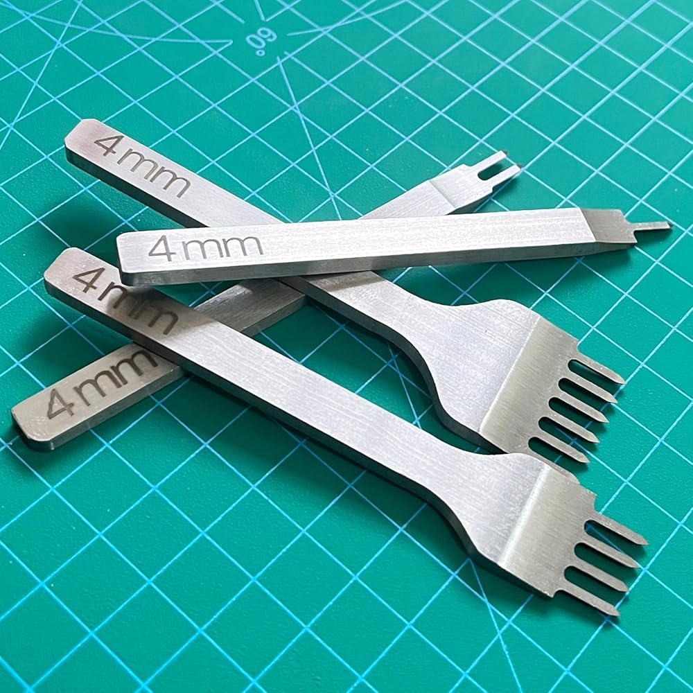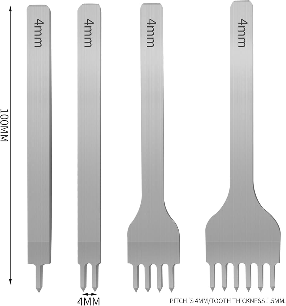 Prong Punch Tool Set, 1/2/4/6 Leather Hole Punch Tool, 4pcs Prong Row Hole Punch DIY Lacing Stitching Chisel Set Leather Craft Kits