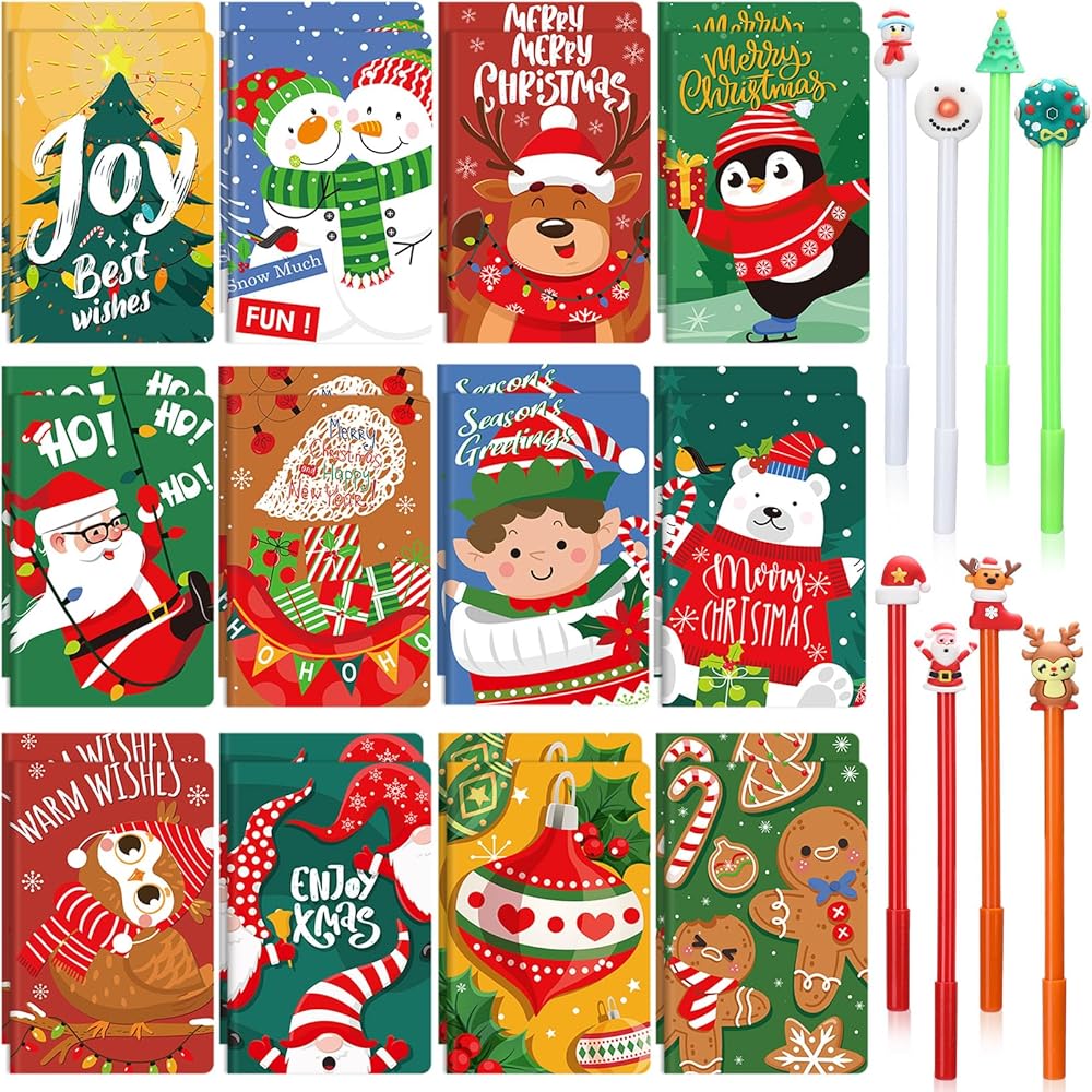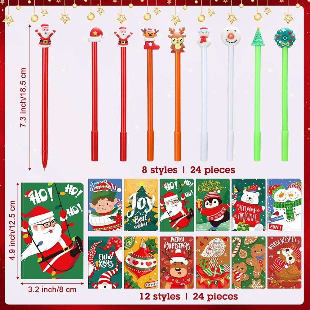 The product contains many Christmas pocket notebooks and multi colored Christmas shaped ballpoint pens, numerous of Xmas notebooks and Christmas pens can meet your replacement needs.