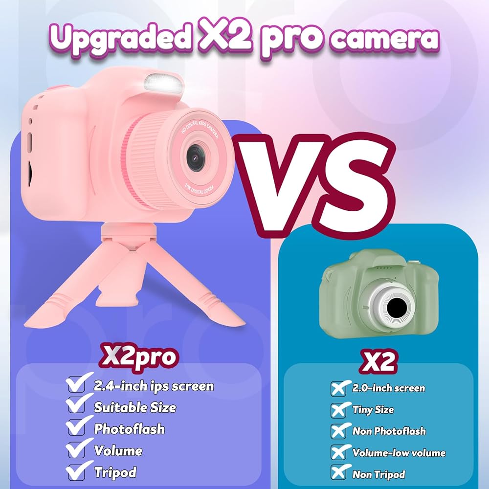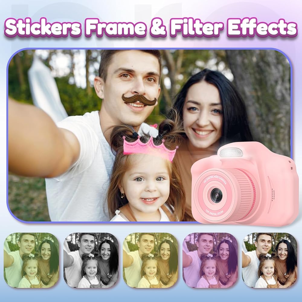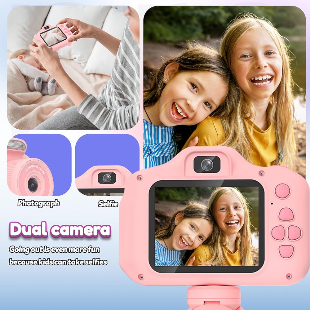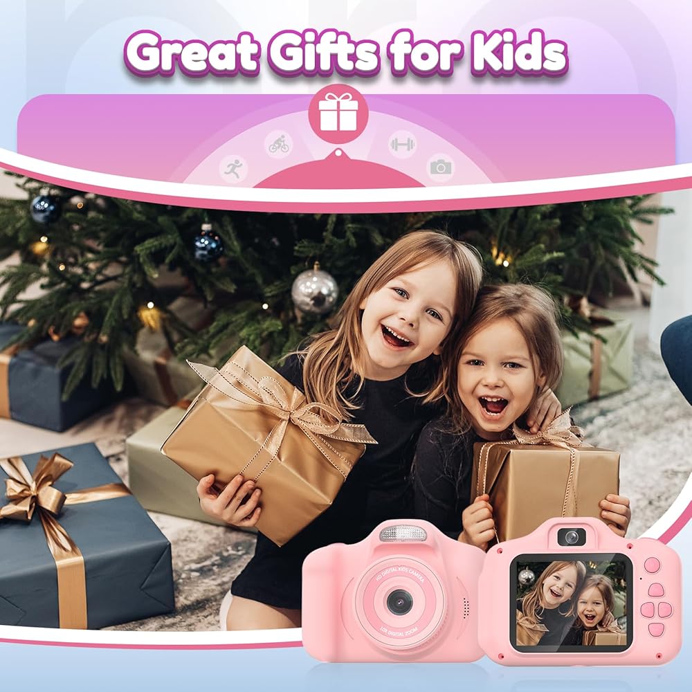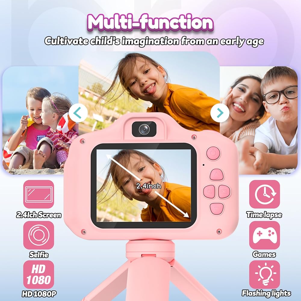 Upgrade Kids Selfie Camera, Christmas & Birthday Gift for 6-10 Year Old Boys & Girls, 2.4 Inch Digital Camera Toys for Kids 3-12 Years, 1080P Video Recorder with Flash (Pink)