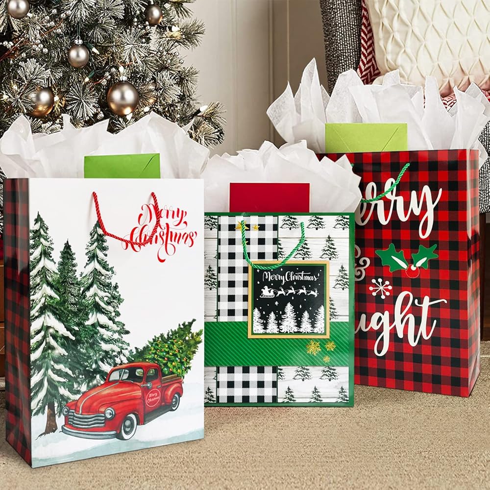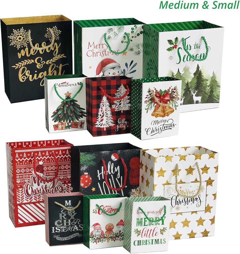 This VALUE PACK includes 24 count Christmas Gift Bags and 60 count delicate Christmas Gift Tags.