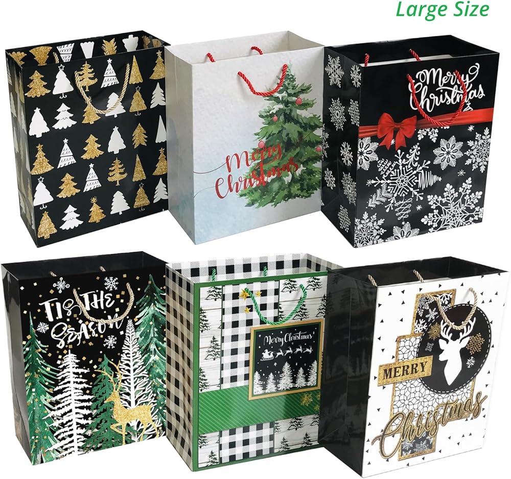 Includes 6 Jumbo 6 Large 6 Medium and 6 Small Gift Bags! This set includes more large bags than other such similar sets.