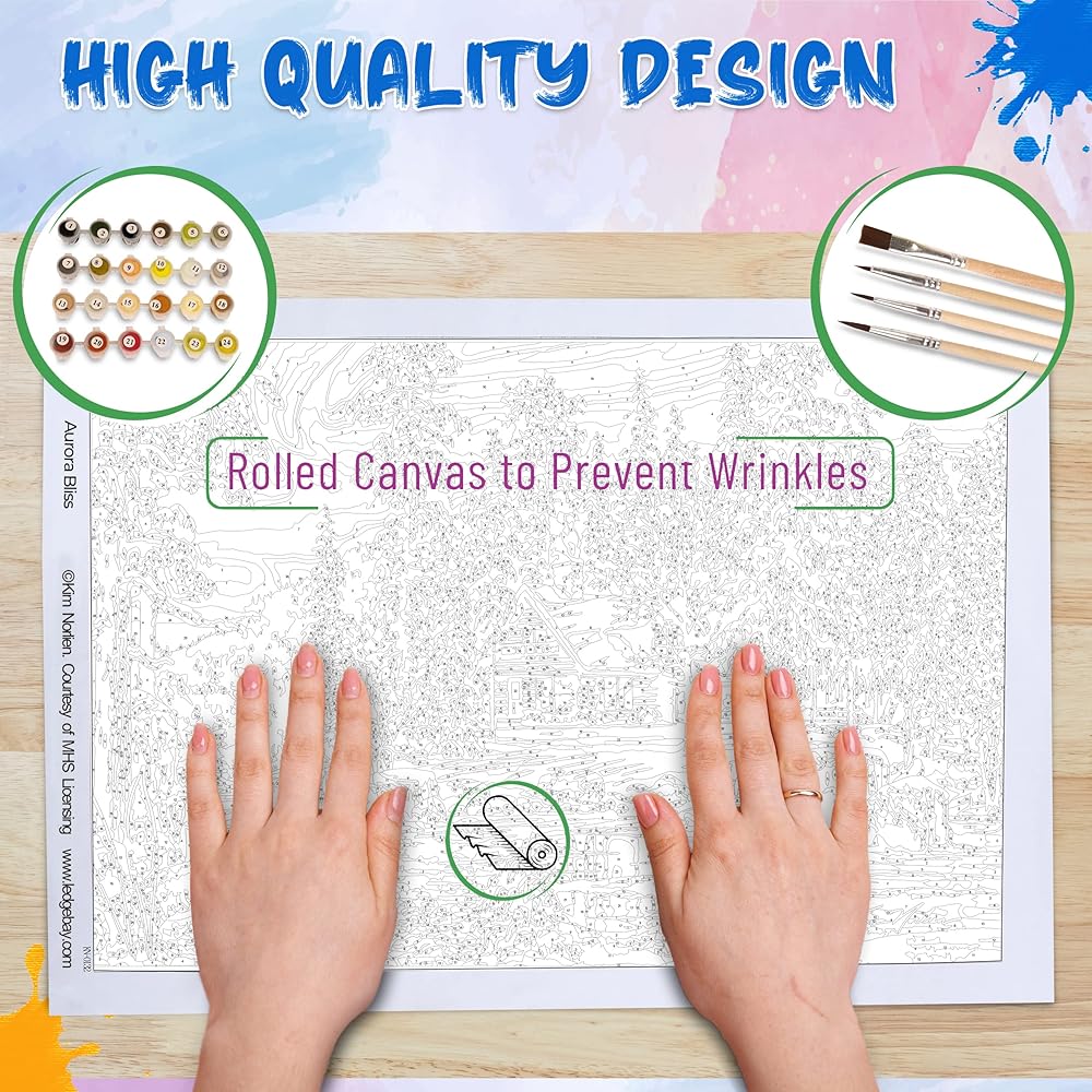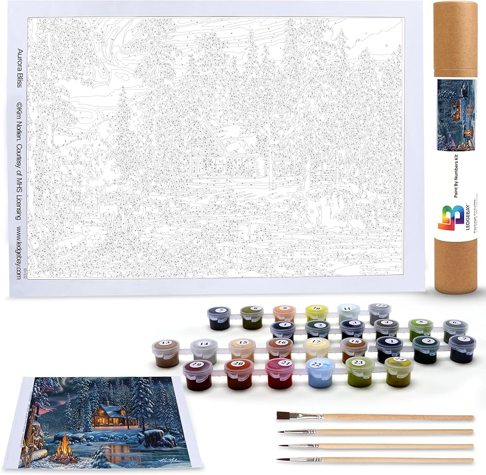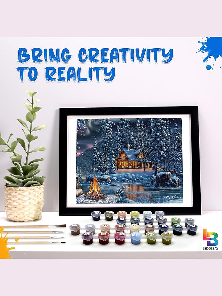 THE COMPLETE PACK - Ledgebay provides everything you need to become an inspired artist. Our paint by number for adults beginner includes one 16" x 20" canvas, set of instructions, 4 paint brushes of different sizes, set of acrylic paints, small photo of finished painting for reference, and a 11" x 17" printout in case the artist messes up.