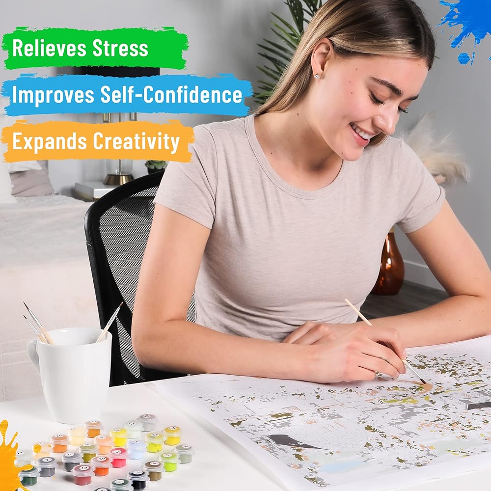 REAL LICENSED ARTWORK - Our paint by numbers for adults with the Ledgebay kit features designs from authentic licensed artwork. The artist makes a commission on all sales, so it's never been easier to get into creatively. If you're looking for something fun and different, this is it!