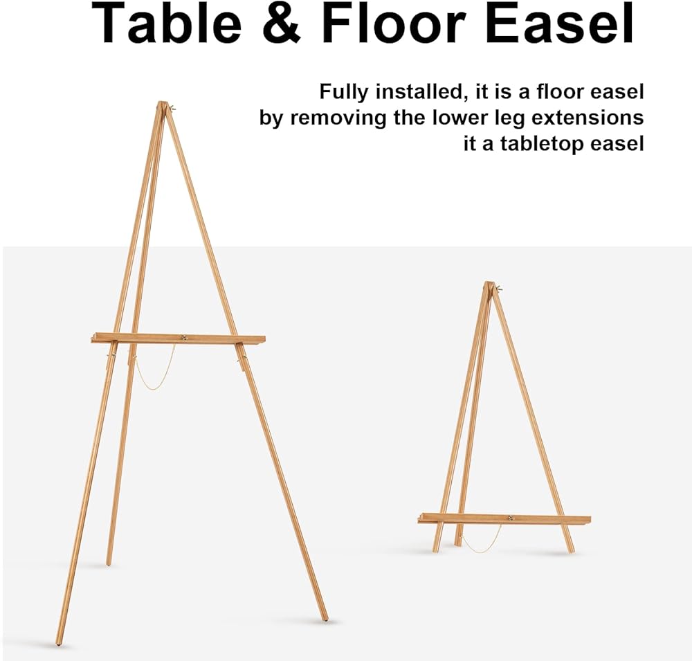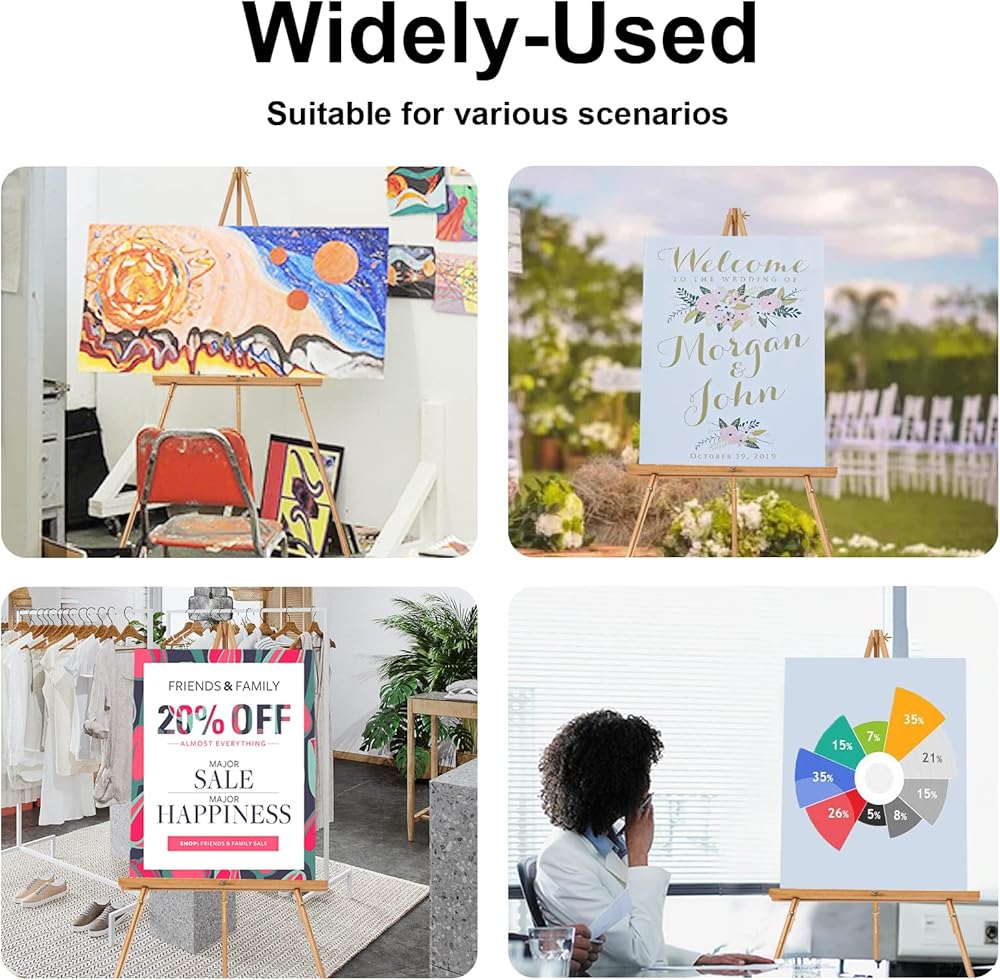 MULTIFUNCTIONAL USE: This versatile wood easel can work as a delicate display easel or a painting easel. It is a durable easel ideal for students, professionals, and advanced artists. It is also a perfect choice to display artwork, paintings, office presentations, trade shows, wedding signs, store posters, and more.