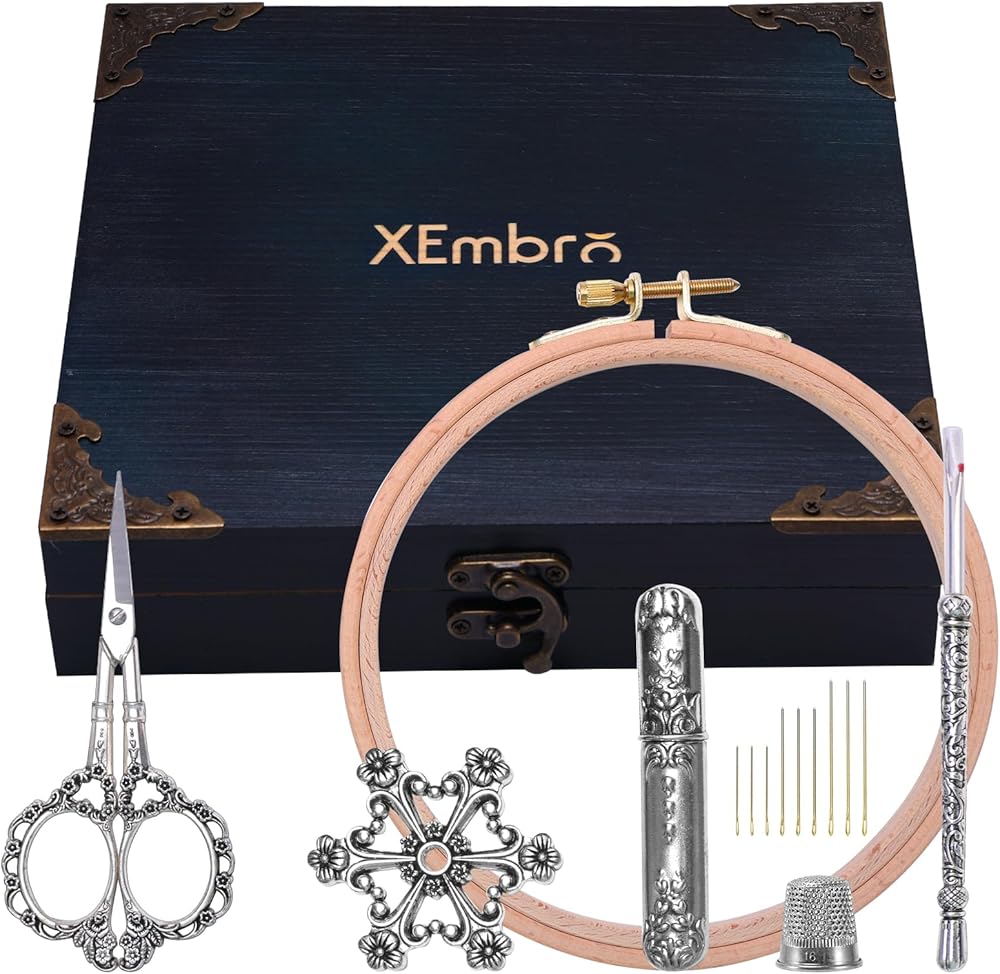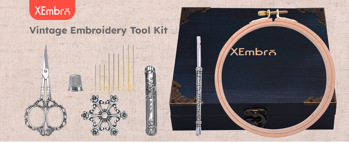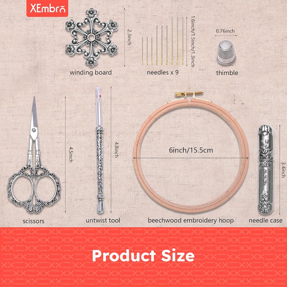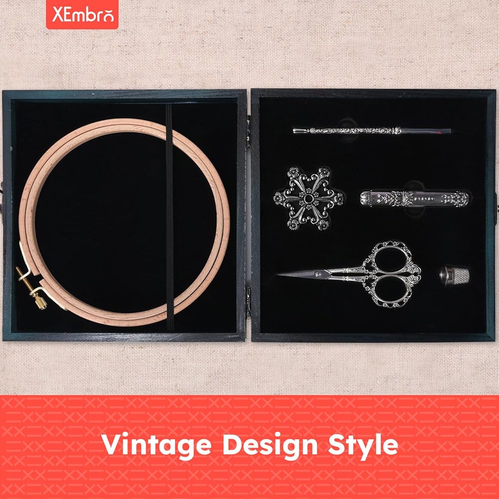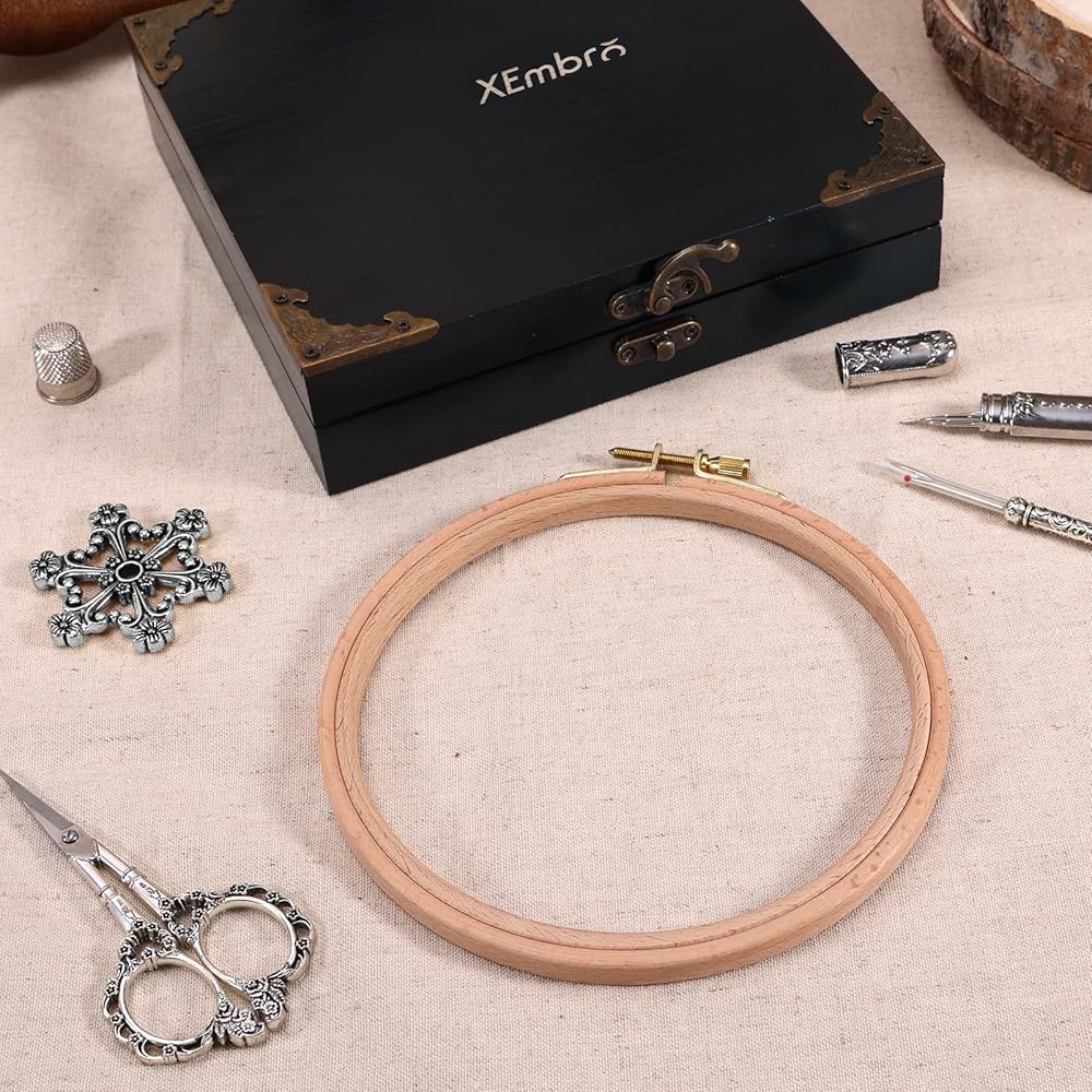 【Exquisite Vintage Design】This embroidery tool kit features a charming vintage design, the handles are engraved with intricate, ornate floral patterns that add a touch of elegance to your stitching projects. The beechwood embroidery hoop has fine anti-skid embossed textures that will fix your fabric well