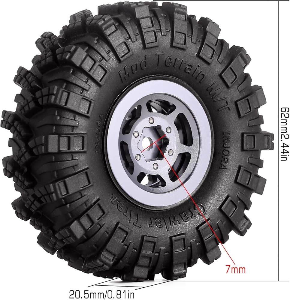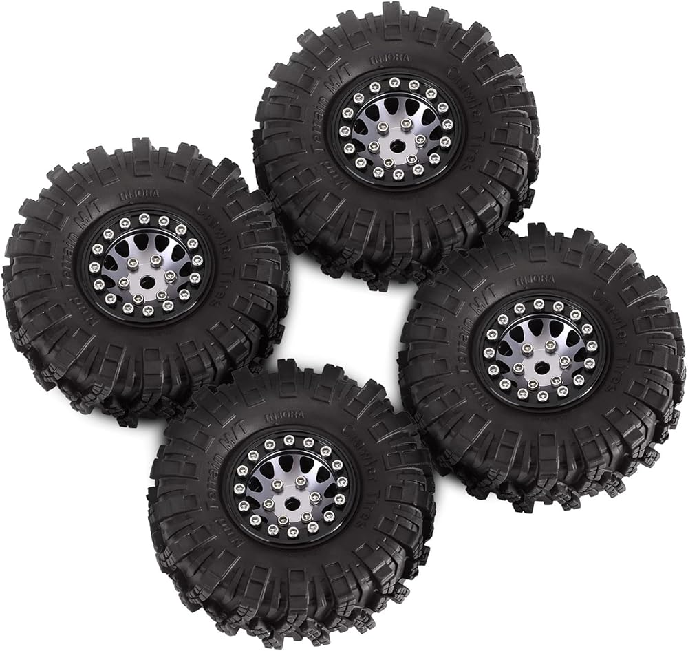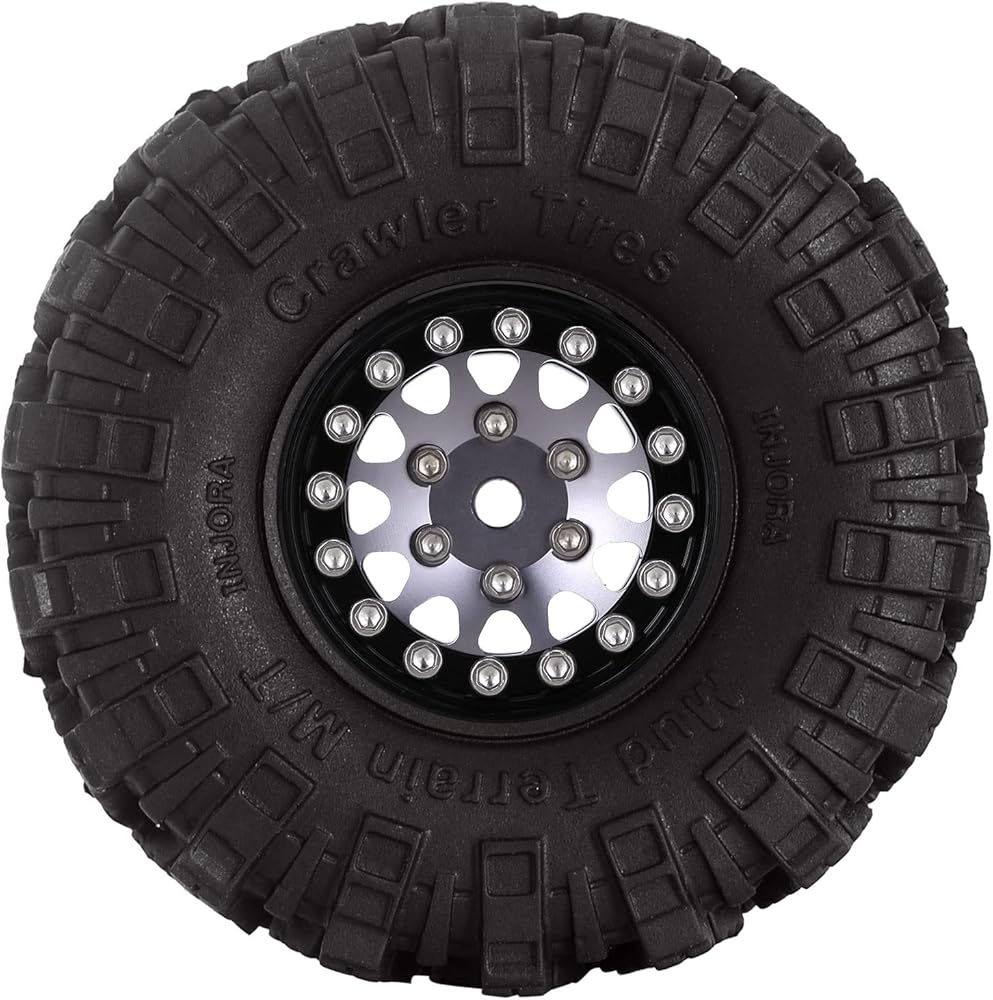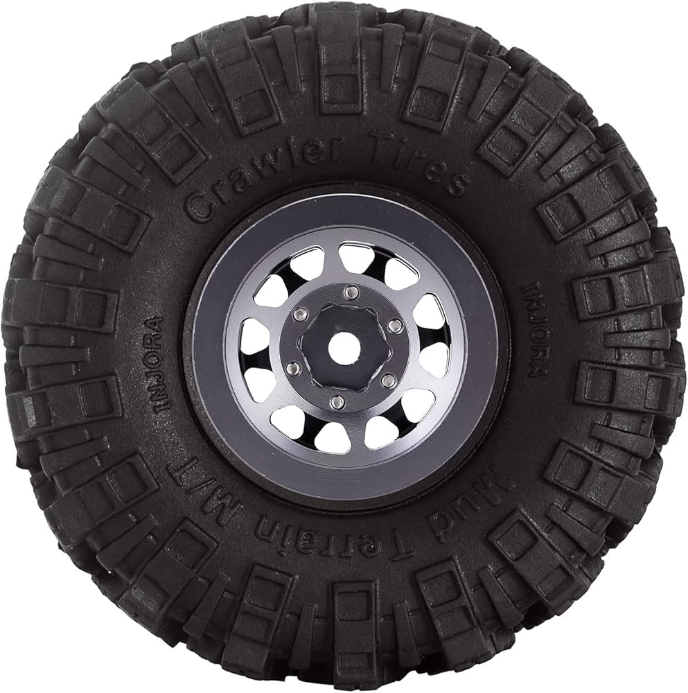 INJORA 1.0 Tires Crawler Mud Terrain Tires for SCX24 TRX4M A24 Axial 1/24 1/18 Crawler Upgrade Parts (Black&Grey)