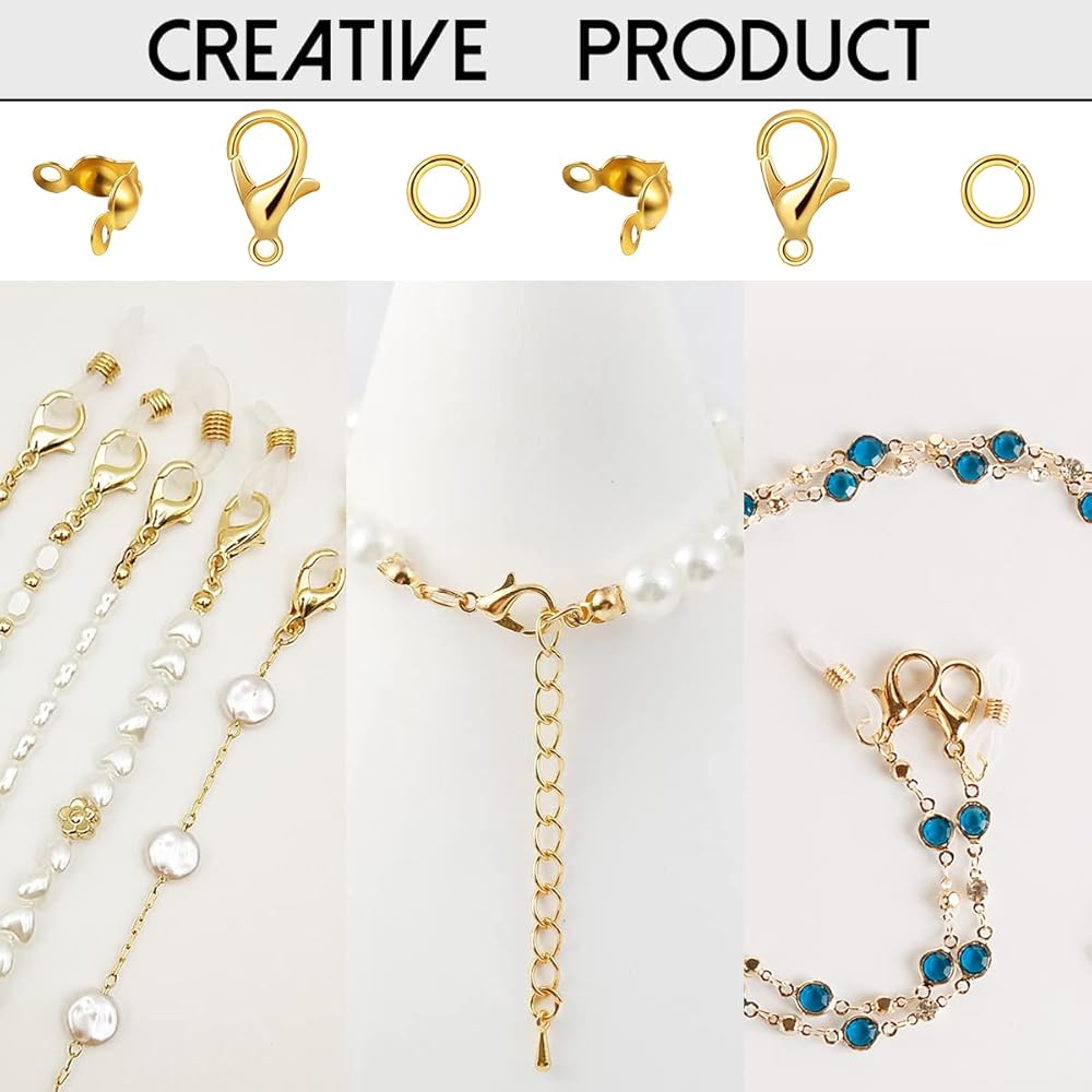 DIY Jewelry Accessories Kit: you will get totally 1250 pieces jewelry crafts making accessories, includes 800 pieces open jump ring connectors 300 pieces bead tips knot covers and 150 pieces lobster claw clasps, large quantity and 3 types of jewelry making supplies are suitable for different applications, meet your multiple craft projects needs
