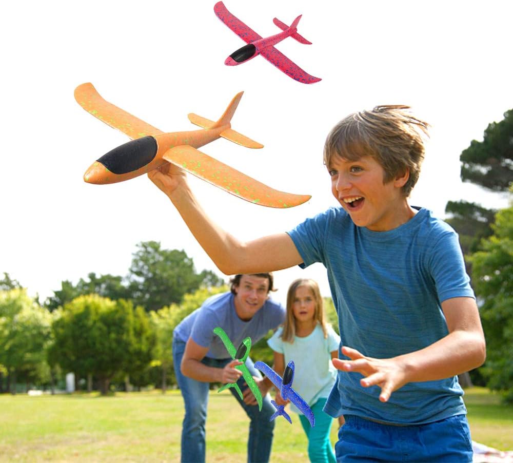 ✈ For All Age -- 4 Pack glider planes toy in the combination, good ways to build social relationships for kids, they are with 3 flight modes, suitable for flying competition. not only for kids, whole family can enjoy the happy hours. Perfect dual flight mode foam plane toy for boys and girls, kids birthday party favor, outdoor sport toys games, get your kids out of couch, good for their health, GIFT for ages 3 4 5 6 7 8 and up Years Old Boy.