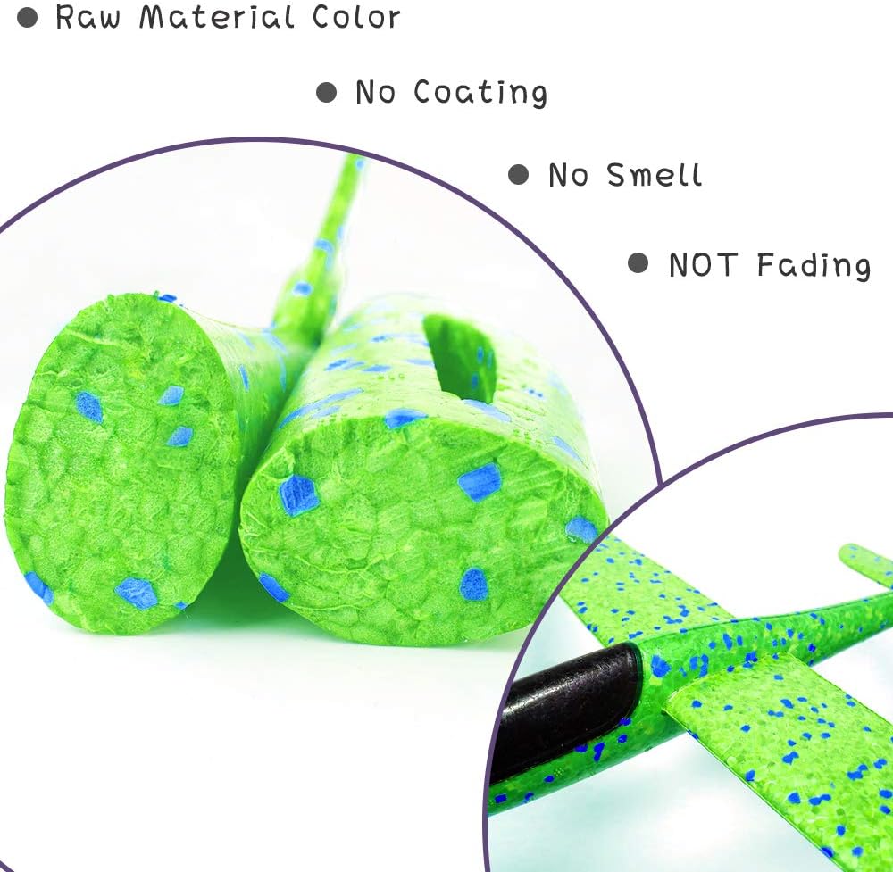 ✈ Safety Inspection for Kids -- Mypre only uses approved safety materials. Foam glider aircraft selected top quality EPP foam, soft foam airplanes made of EPP high-polymer material, Eco-friendly material, lightweight, good elasticity, impact resistance. will not harm your kids even if throwing foam plane hits him/her during landing. Foam planes for kids excellent outdoor toys, flying glider planes toys are rigorously tested.
