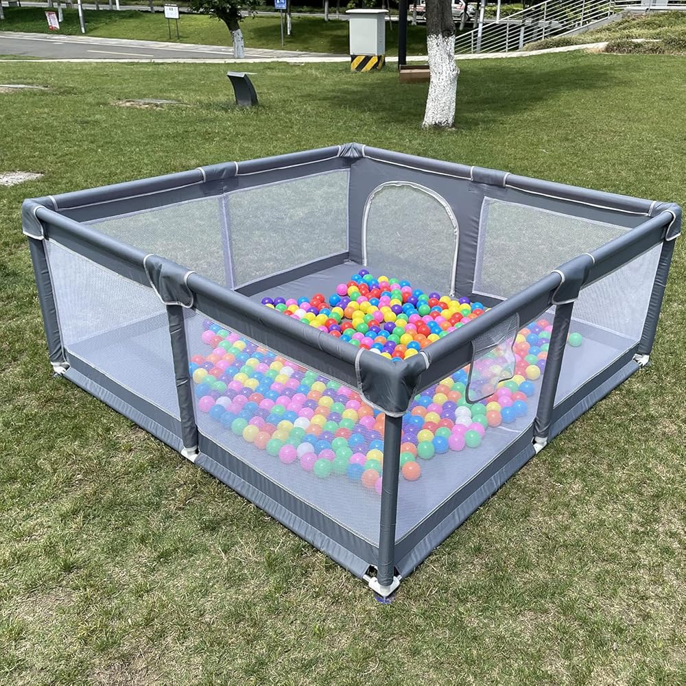 PORTABLE AND EASY TO ASSEMBLE. This type of ball pit contains a few simple parts,it can be assembled with a few minutes(The pipe must be plugged to the corresponding position for smoother assembly, when installing the corners of the fence, do not use too much force, otherwise the cloth will be torn).