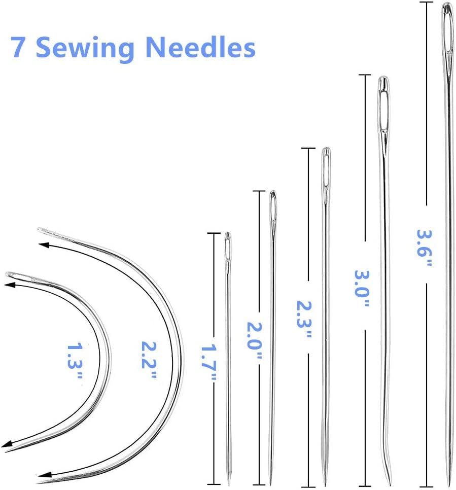 Glover's needle, carpet needle, sail needle, straight upholstery needle, sack needle, curved mattress needle (small) and curved mattress needle (large).