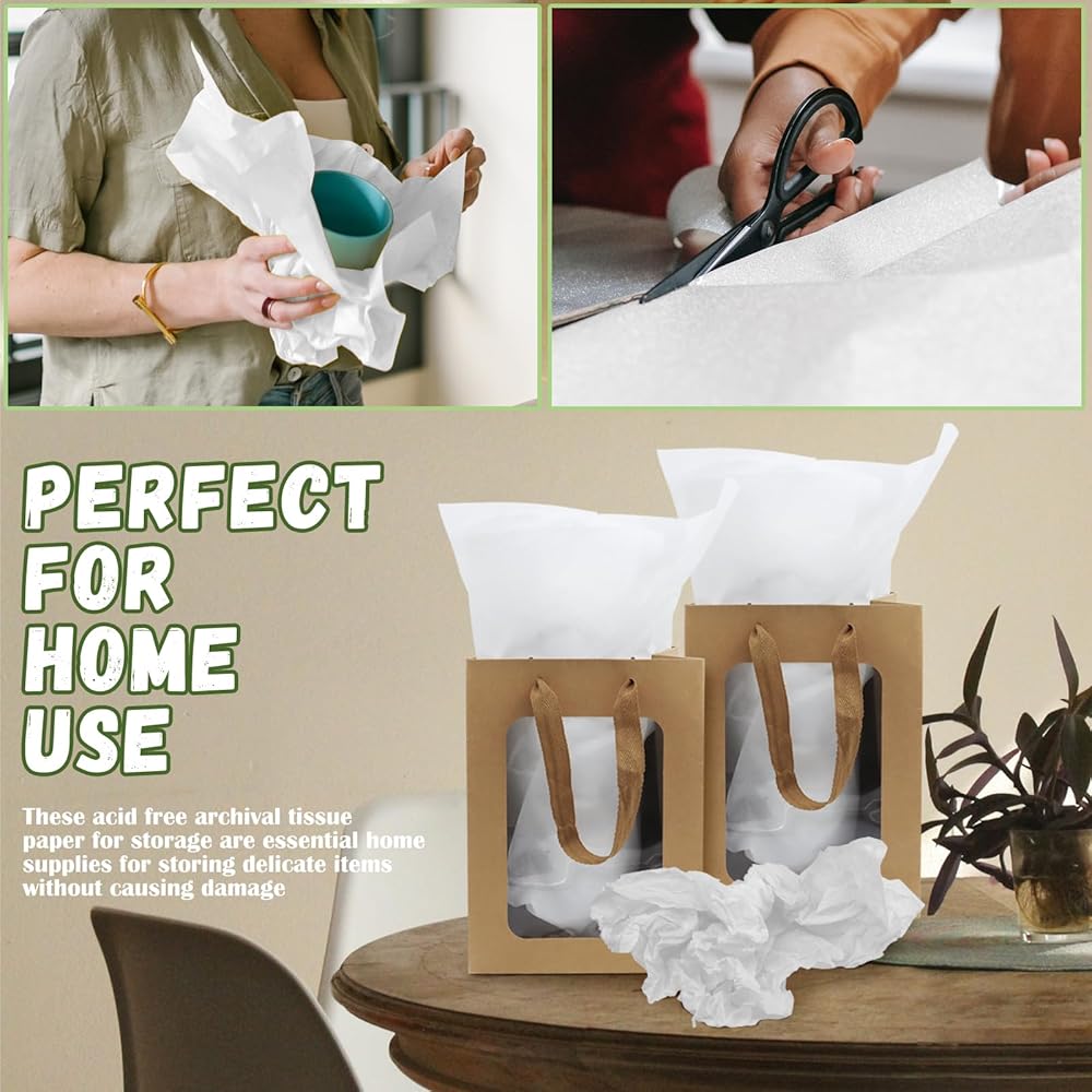 Versatile Storage Solution: These white archival tissue paper acid free have a wide range of applications and are ideal for protecting and storing various items. Whether it's old photographs, newspapers, collectibles, antiques, artwork, children's books, clothes, textiles, or cherished family heirlooms, they offer reliable preservation.