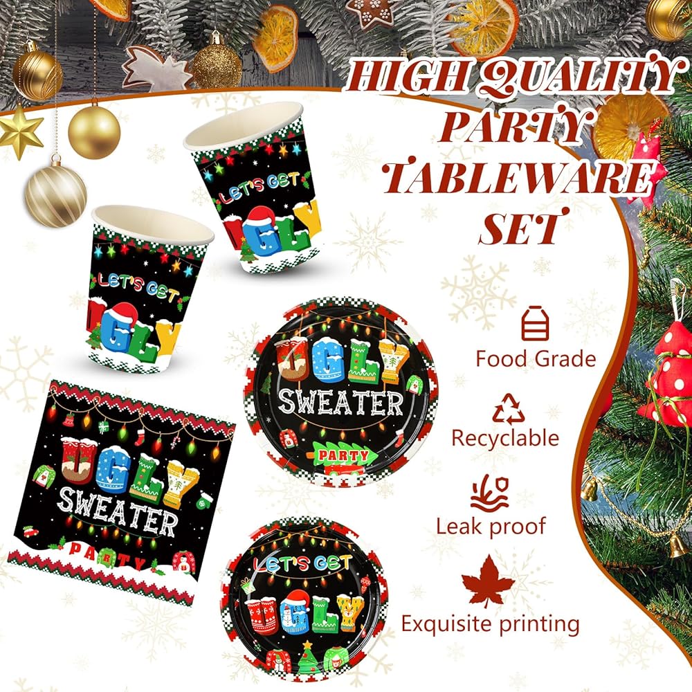 The Christmas plates and napkins sets are disposable, you can throw them into bins after use, require no cleaning, so you can enjoy a nice free time after your meal, bringing much convenience.