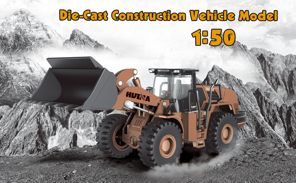 - Diecast front loader model. Materials: 97% metal, 2% rubber, 1% plastic.