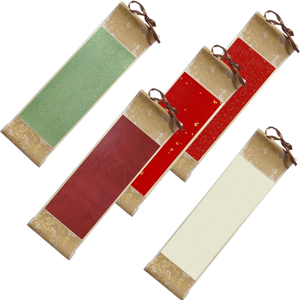5 PCS Blank Chinese Calligraphy Scroll Decorative Scroll Wall Hanging Japanese & Chinese Calligraphy Painting DIY Art Project Supply