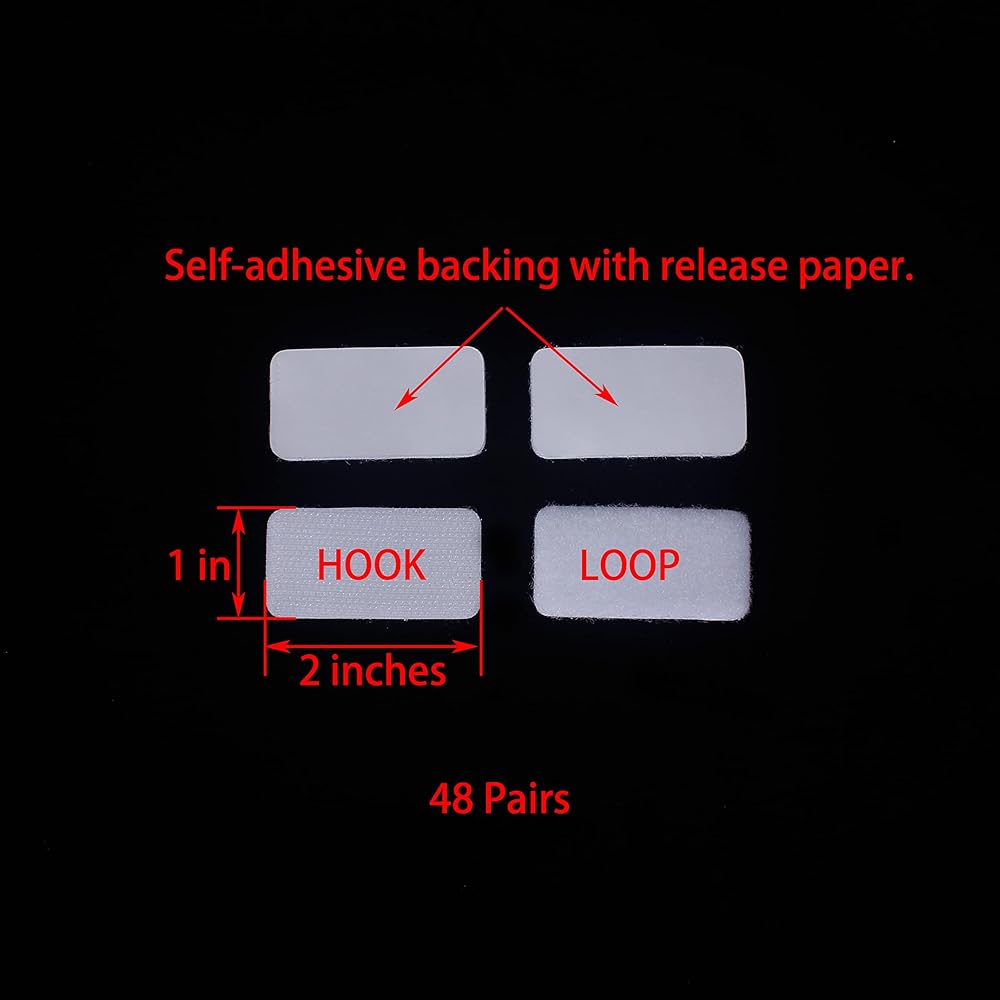 (White 48 Pairs 1 x 2 in) Rectangular Hook & Loop Sheets Self Adhesive,Industrial Strength Sticky Back Fasteners Heavy Duty Hook and Loop Tape,Organizing or Hanging Items Indoors or Outdoors