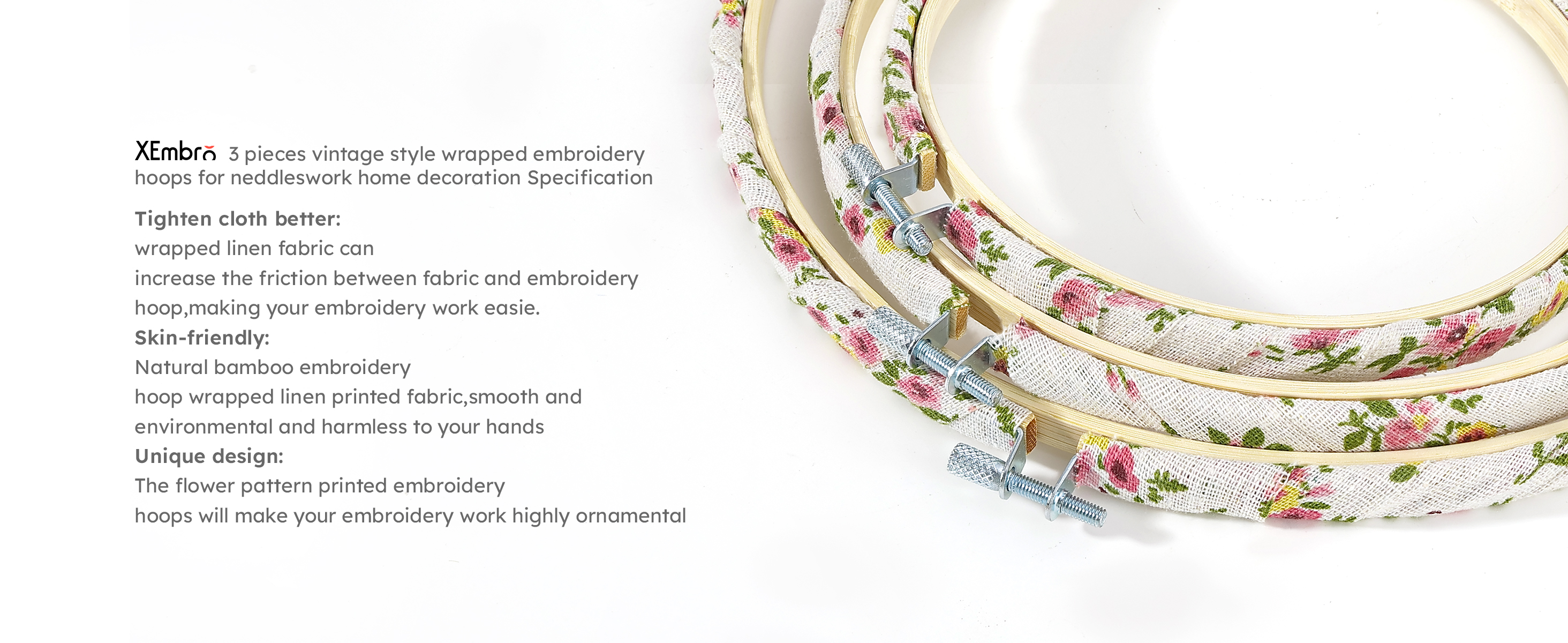 Tighten Cloth Better: The outer ring-wrapped linen fabric can increase the friction between the fabric and the embroidery hoop, making your embroidery work easier