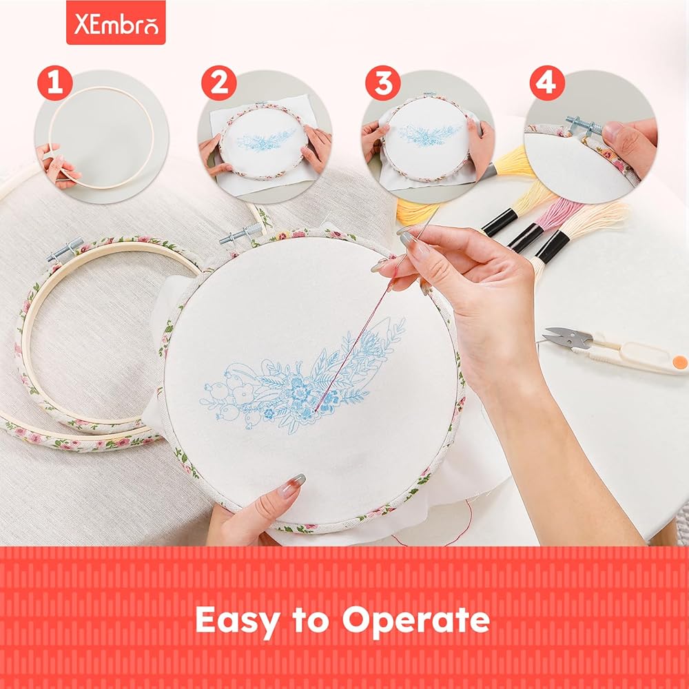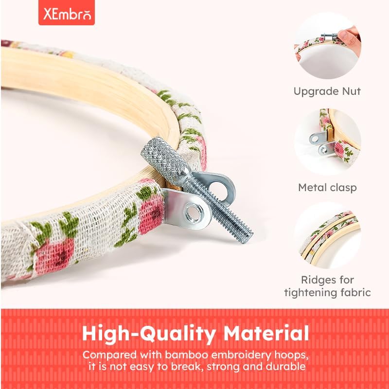 Skin-friendly: The cross stitch hoops are made of natural bamboo, lightweight and durable, the fabric wrapped on the hoops is made of linen, harmless to your hands