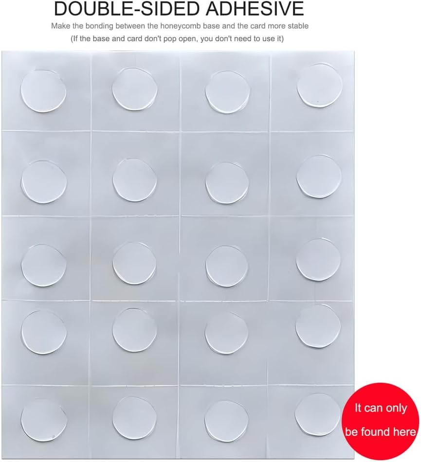 Including various 8pcs dinosaur cards, 16 honeycomb bases and Additional Double-sided tape (It can prevent the base from popping open during use).
