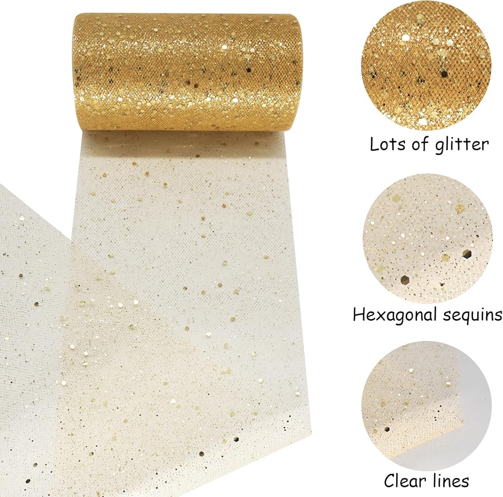Unique Craftsmanship: A large number of sparkling small glitters combined with scattered hexagonal sequins give the tulle a sparkling sheen that shines even more under the light, mysterious and dreamy crafts and decorations create a romantic atmosphere.