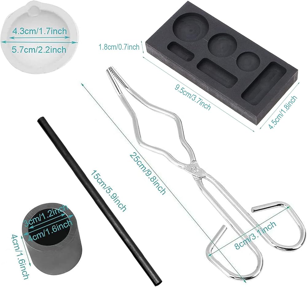 ⭐Graphite rod: Used to stir precious metals and metal wastes during melting. When melting gold and silver, this stick can help you get a homogeneous mix
