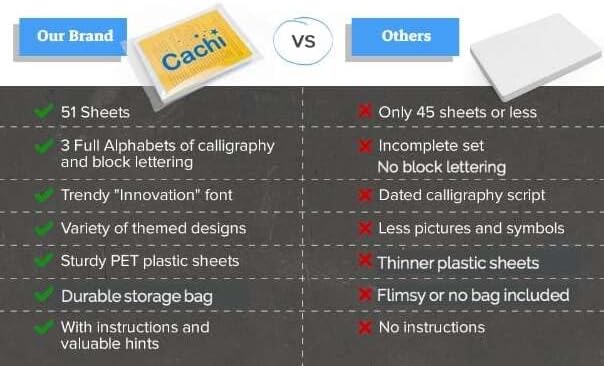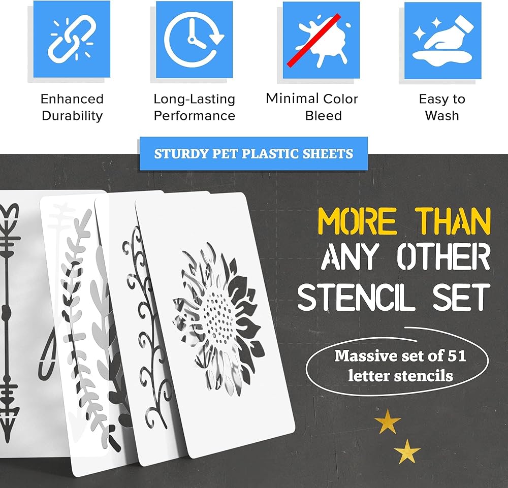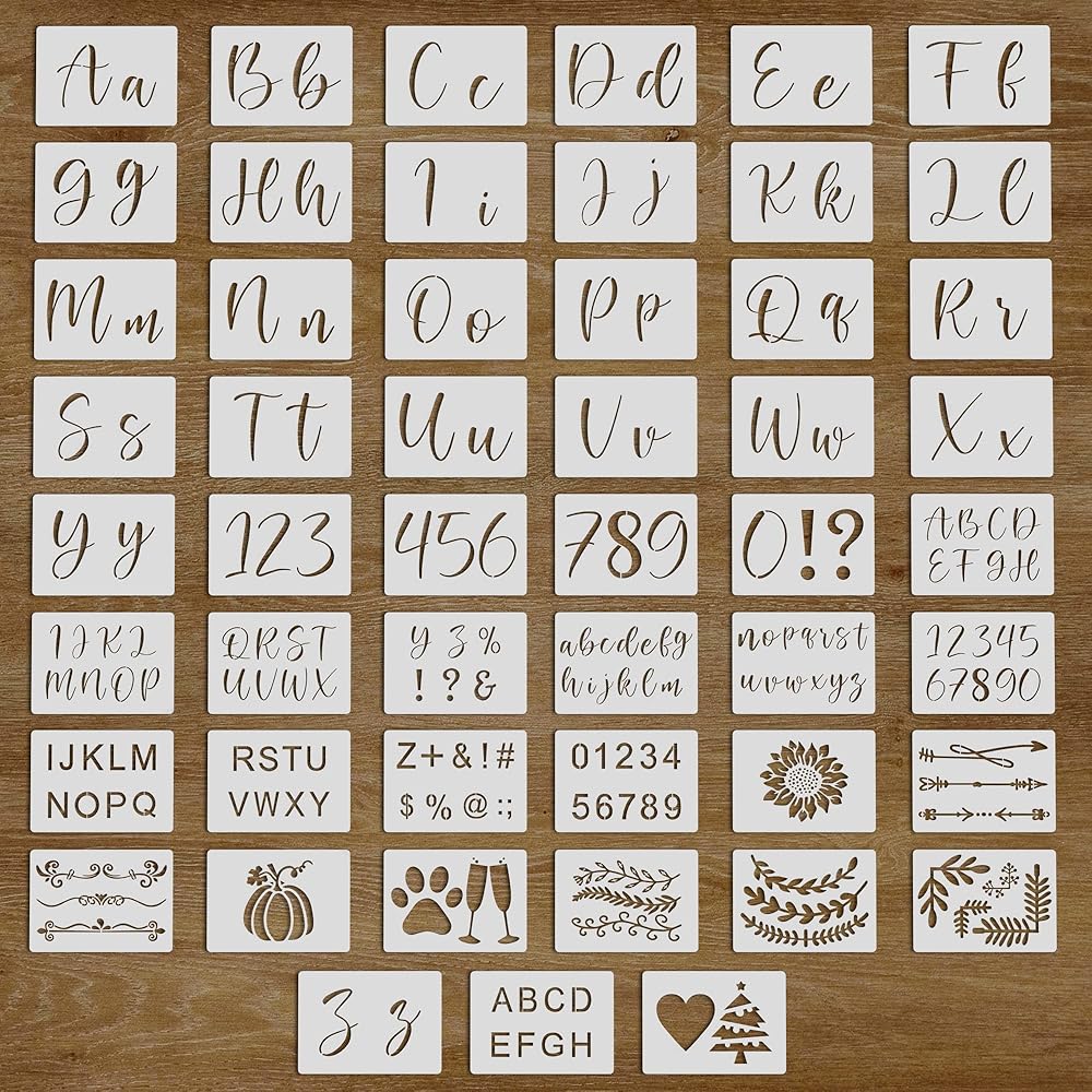 Cachi Large Letter Stencils for Painting On Wood, Canvas & More - 51 Reusable Calligraphy Alphabet Stencils, Number Stencils - Farmhouse and Welcome Signs, Holidays, Seasons, Craft Projects