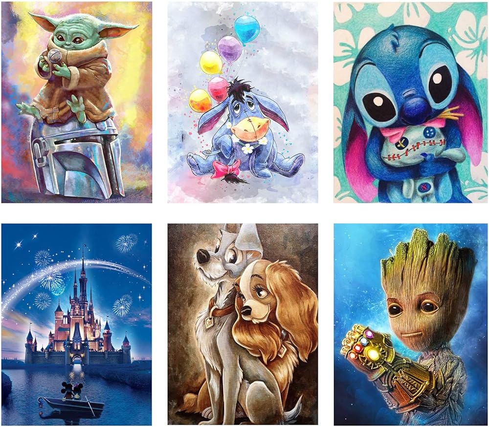 6 Pack 5d Diamond Painting Kits for Adults,DIY Full Drill Diamond Art Kits Paint with Diamonds Crystal Rhinestone Cross Stitch Cartoon Picture Arts and Crafts for Beginners Kids (9.8 X 13.8 Inch)