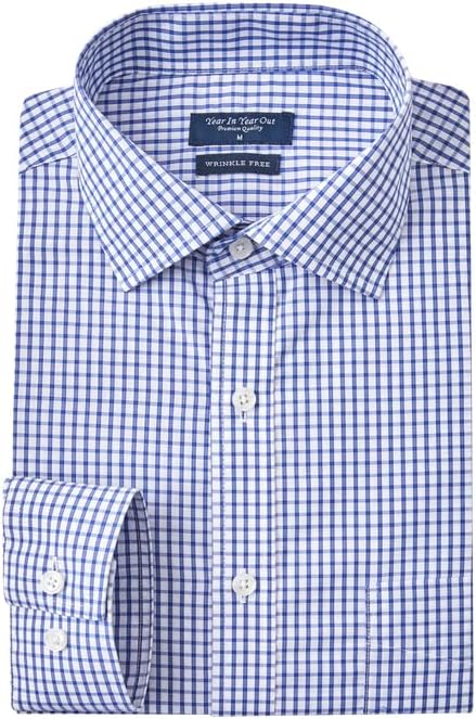 Year In Year Out Wrinkle Free Dress Shirt for Men Regular Fit Long Sleeve Wrinkle Resistant Shirt(Blue White 167,S)