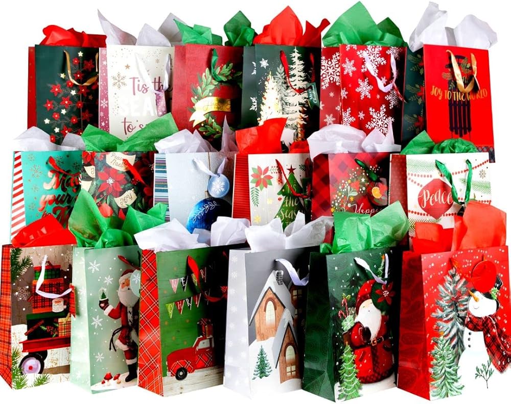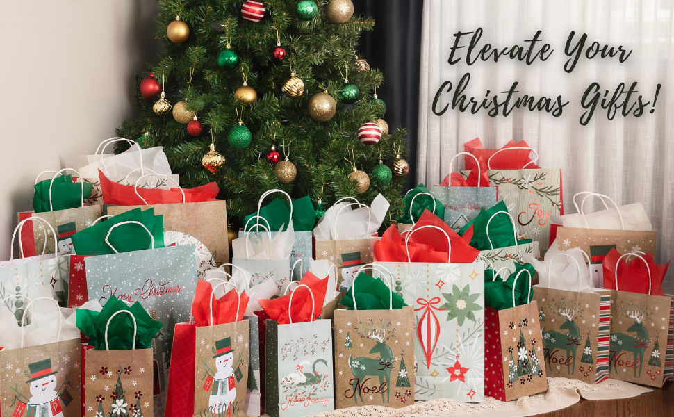 Sturdy Cute and Durable-Environmentally Friendly Strong Cardstock Paper Christmas Bags. Stunning Designs to bring Smiles to your Loved Ones. Strong Lace Handles and Thick Bottoms, to Transport and Deliver your Gifts!