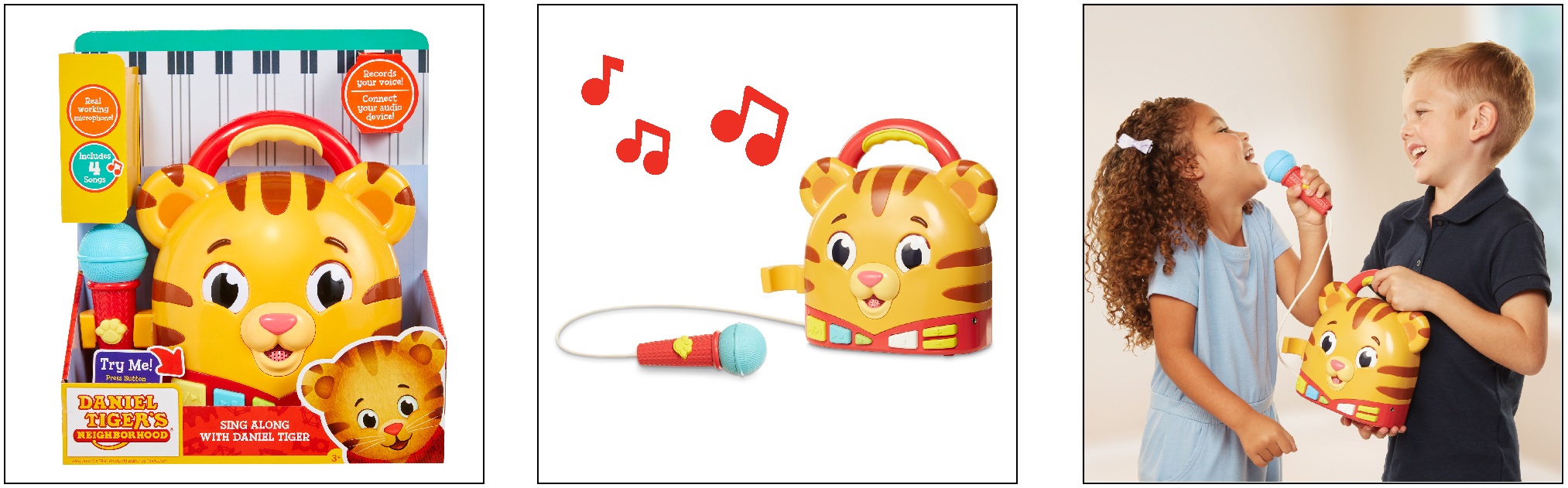 Sing along to your favorite Daniel Tiger's Neighborhood songs with the sing along with Daniel player. It includes songs such as; "I'm Daniel" and "it's such a good feeling". record yourself, using the real working microphone, singing along to the songs and playing them back for family and friends. Plug into your audio device for more singing fun! built-in handle for easy carrying. Uses 3 "AA" batteries. Built-in songs from Daniel Tiger's Neighborhood - record yourself singing along - real working microphone - connect to your audio devise - built-in handle for easy carrying - batteries included. For ages 3+