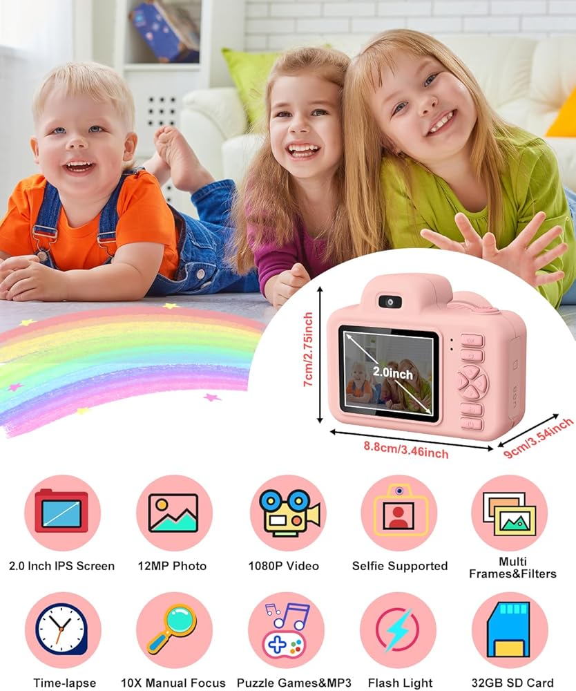 【Best Toy Camera Gifts for Kids】Perfect and Ideal kids toys Gifts For Birthdays, Christmas, New Year, Festivals, Or Parties. It's not only A Toy For Kids But Also A Really Cute Camera. This Mini Camera Is designed for age 3 4 5 6 7 8 9 10 11 12 Years Old Boys And Girls, They Can Easily Capture Scenes Or Animals During Daily Life With Family, And Stimulate Children's Creativity And Imagination.(Kids Aged 3 4 5 years old should use it under parent‘s accompany.)