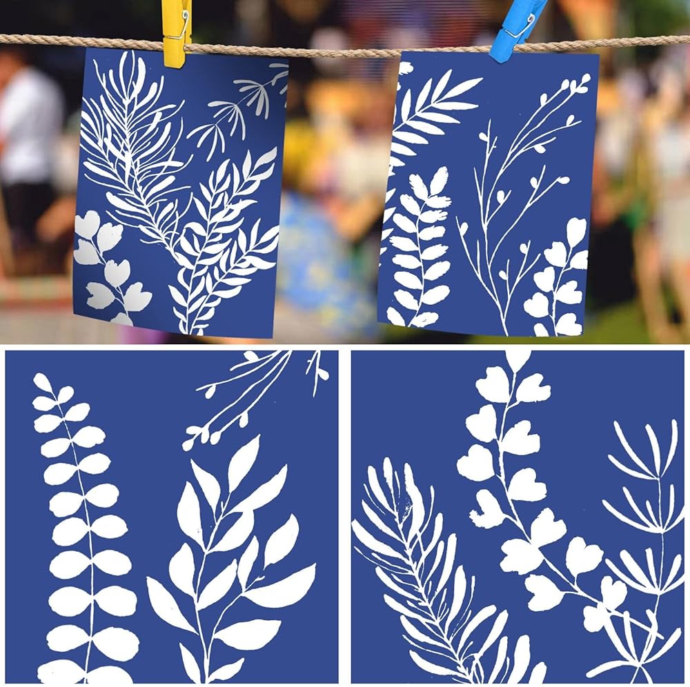 32 Sheets Cyanotype Paper Sun Print Paper Kit A5 Solar Drawing Paper Sensitivity Nature Printing Paper for Arts Crafts DIY Project Using Step: