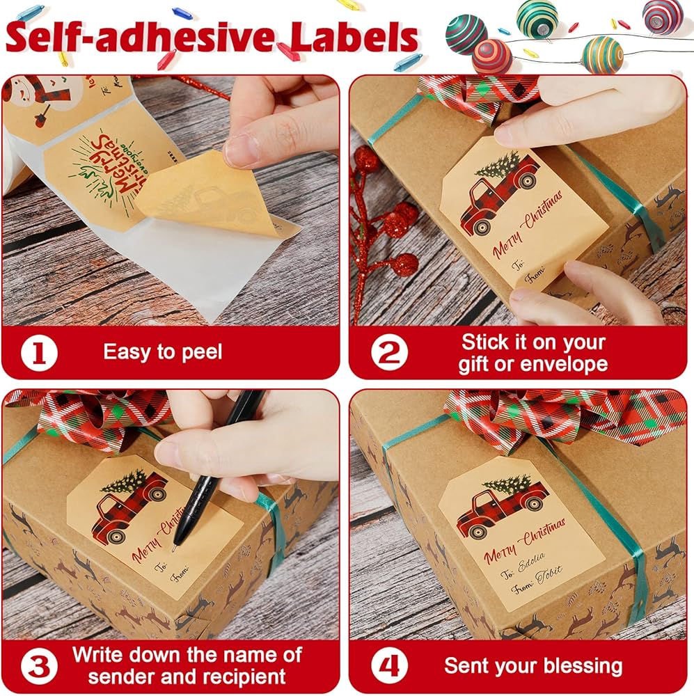 Premium Material: These Christmas stickers tags are made of coated paper with good quality printing and smoothing to write, which will stick your gifts to express the blessings to your family and friend. Besides, Good adhesion would make the Christmas gift tags self-adhesive stick firmly and easy to peel without dirtying the gifts.