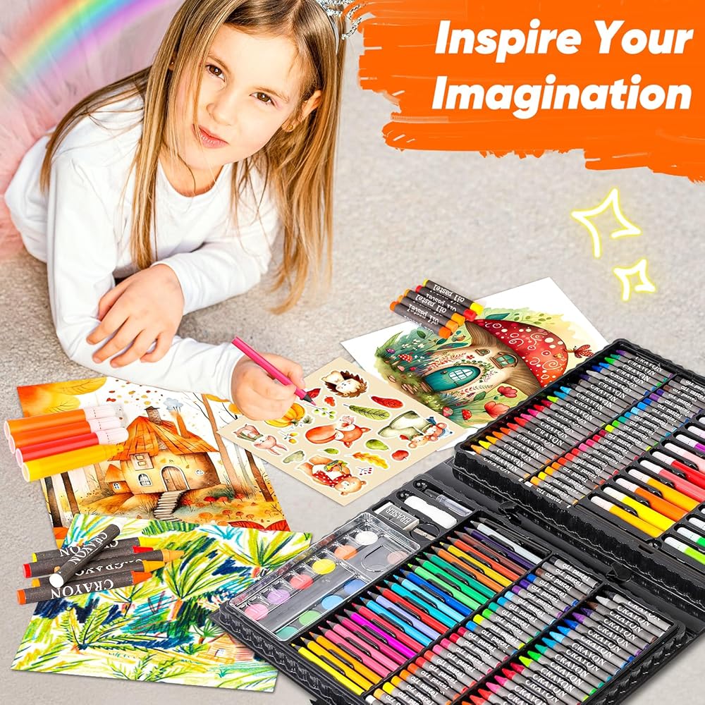 【Premium Quality Materials】Our art supplies are made with high-quality and non-toxic ingredients, ensuring that children can safely explore their creativity while producing vibrant colors and long-lasting results for your child's artwork. Our art kit also includes everything young artists need to dive into the world of drawing and painting, including oil pastels, crayons, colored pencils, and watercolor cakes. Safe art kits to use for any level of artist.