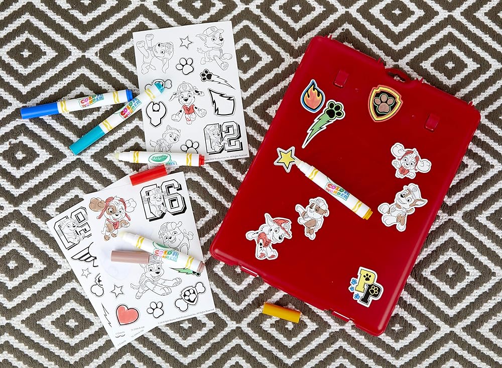 PAW PATROL STICKERS: Kids will love coloring in the included stickers and using them to decorate their storage case any way they like!