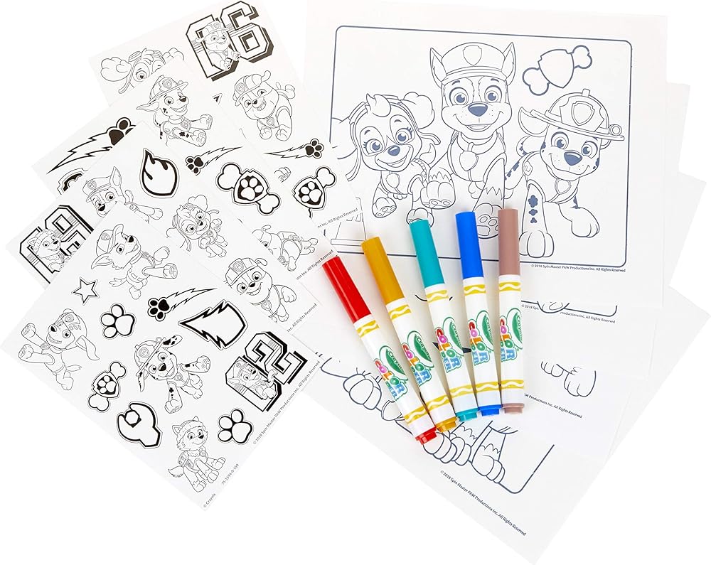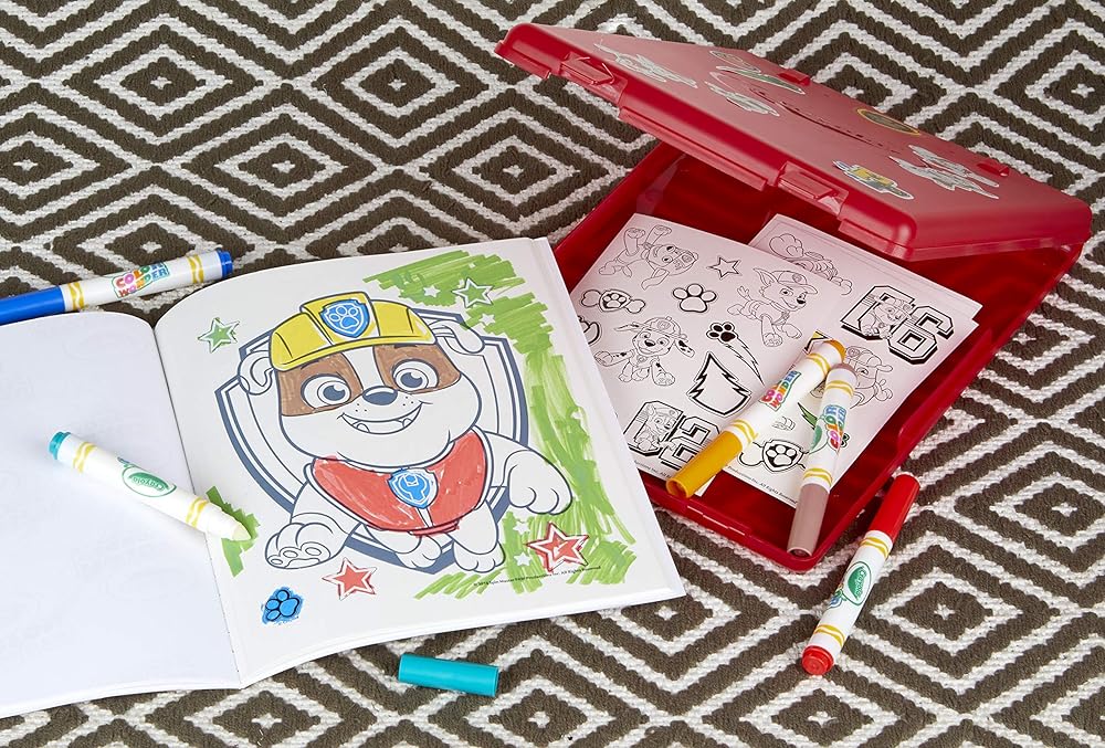 PAW PATROL GIFT SET: Features 24 Paw Patrol Coloring Pages, 5 Color Wonder Markers, 4 Sticker Sheets, and a Plastic Storage Case.