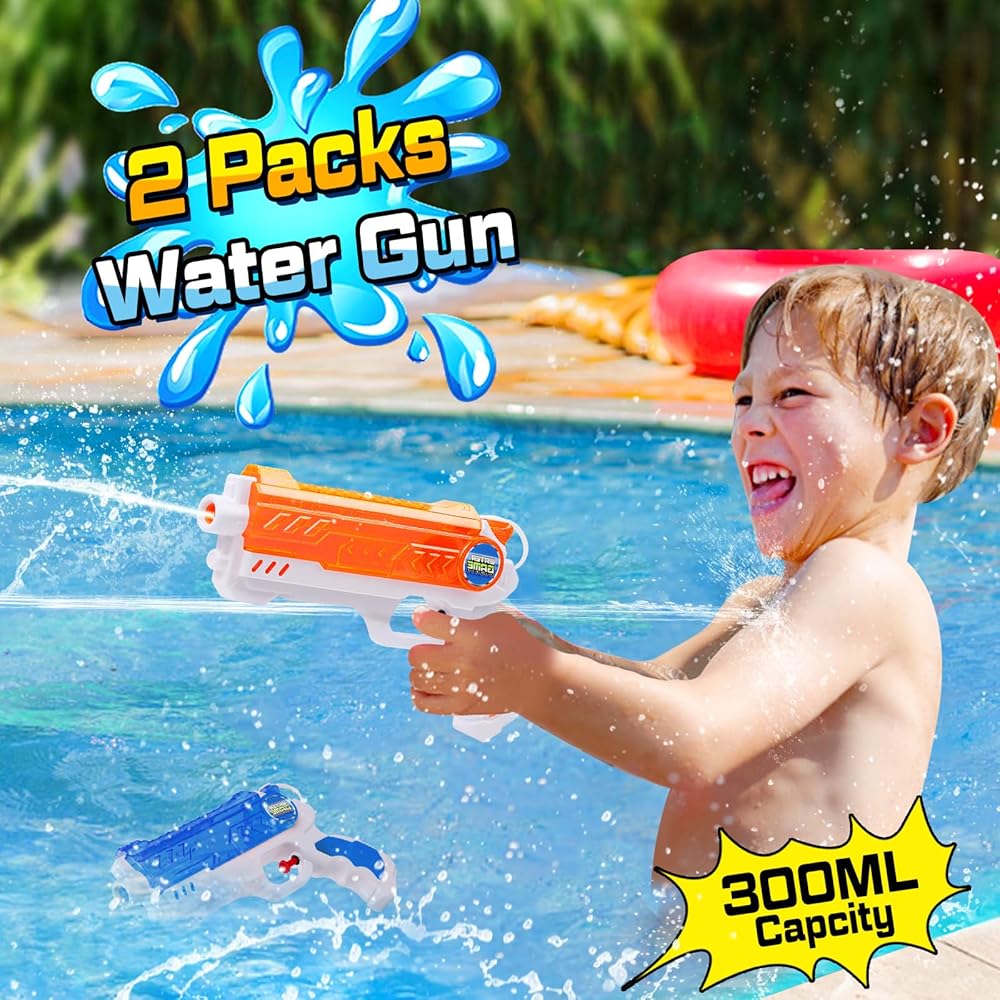 Quanquer 2 Pack Water Guns for Kids - 300cc Squirt Water Pistol Blaster Gun with Trigger for Boys Girls Toddlers, Summer Party Favors for Outdoor Swimming Pool Beach Water Fighting