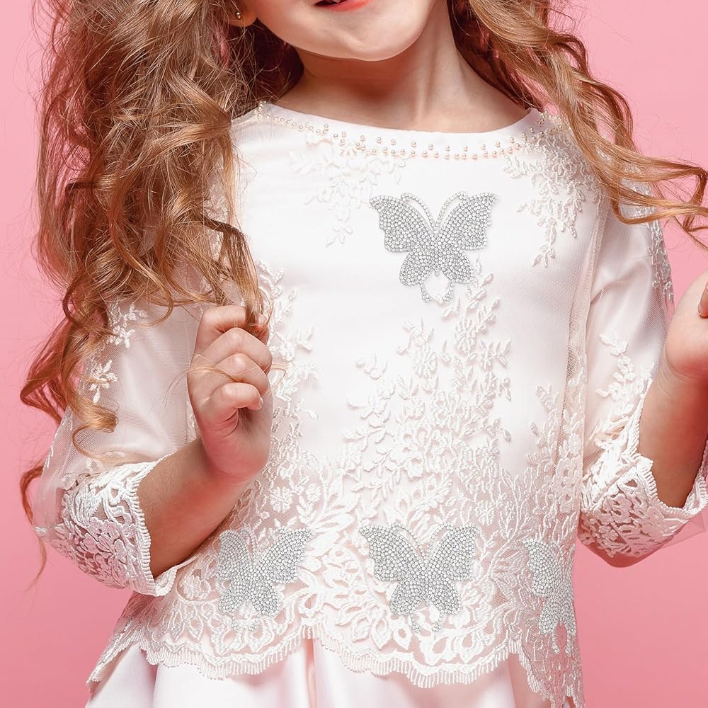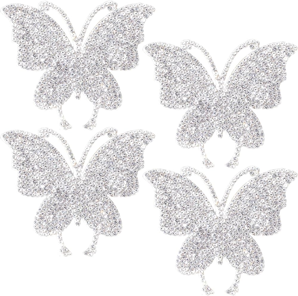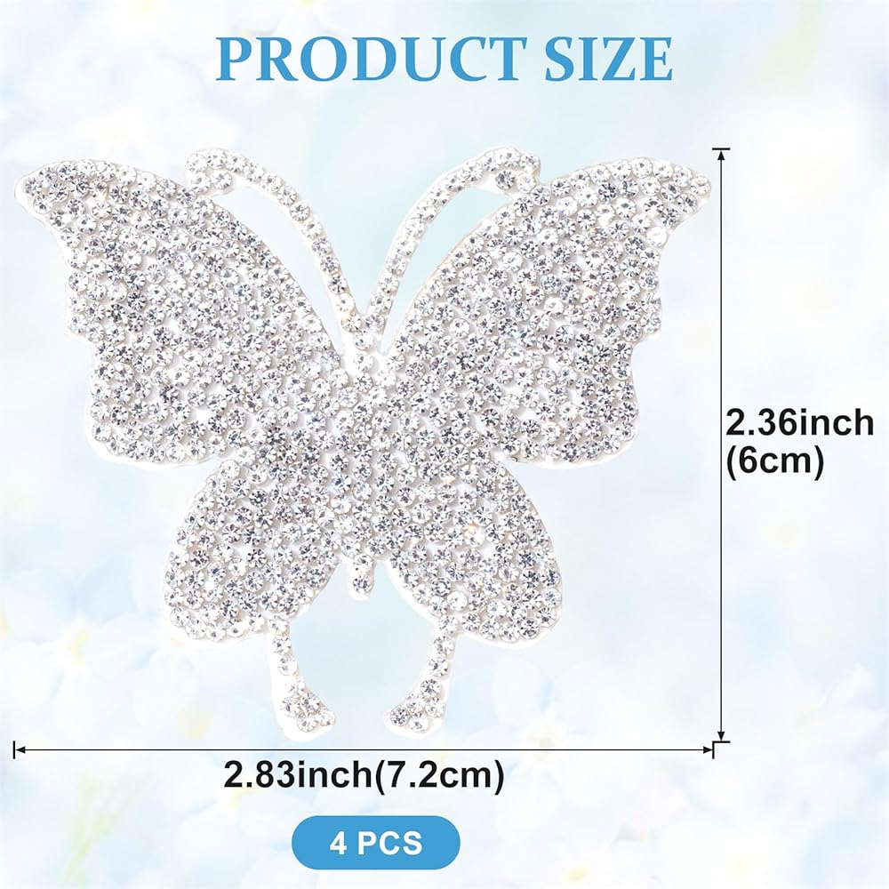 CustomyLife 4pcs Rhinestone Butterfly Patches, Sew on/ Iron on Beaded Butterflies Appliques, Sparkly Clothing Repair Patch for Dress Skirt Jean Jacket Pant Sweater Hat Shoes Bag DIY Craft
