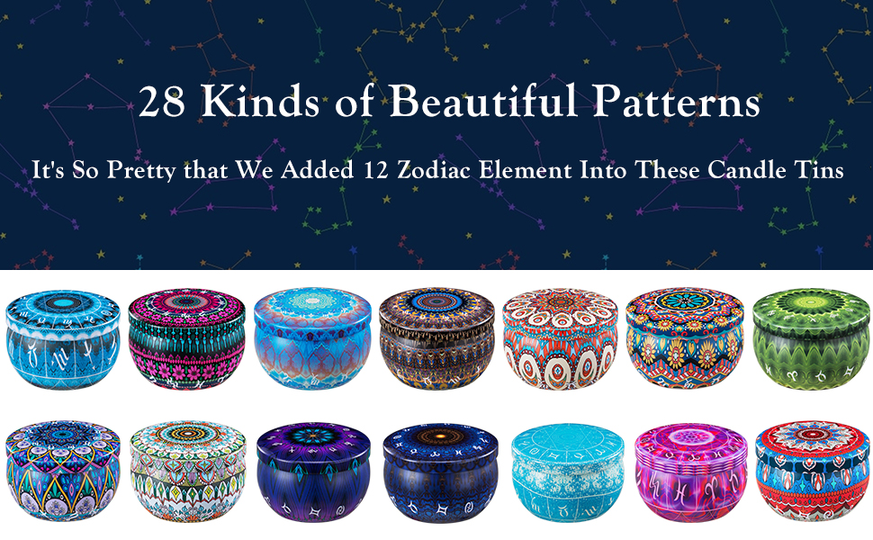 Perfect Gifts: Just use these attractive & unique zodiac pattern tins to diy candles as a gift set, your friend or families would love the lovely design and that elegant touch so much!