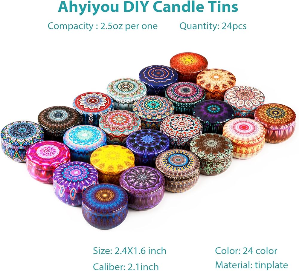 * 24 Pcs 24 Colors Capacity 2.5oz / 73 ml Candle Tins
